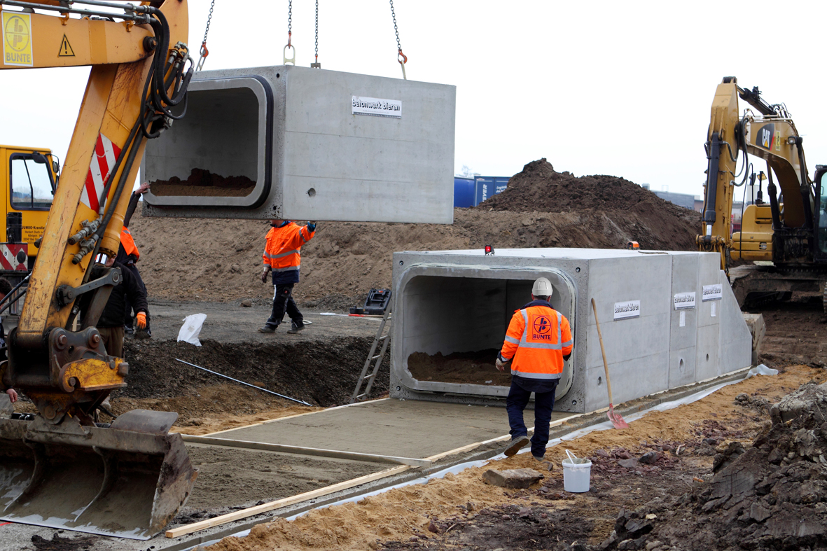 Starke dynamische Belastungen sind dabei vorprogrammiert. An anderen Stellen haben wir es dagegen mit besonders hohen Überdeckungen zu tun, denn die Lärmschutzwände werden zum Teil auf bis zu 3 bis 4 Meter hohen Wällen errichtet, die eine große Erdauflast zur Folge haben. Um auf Nummer Sicher zu gehen, haben wir uns im Zweifel hier lieber insgesamt für ein stabiles Rohr aus Beton entschieden“, so Vieker.