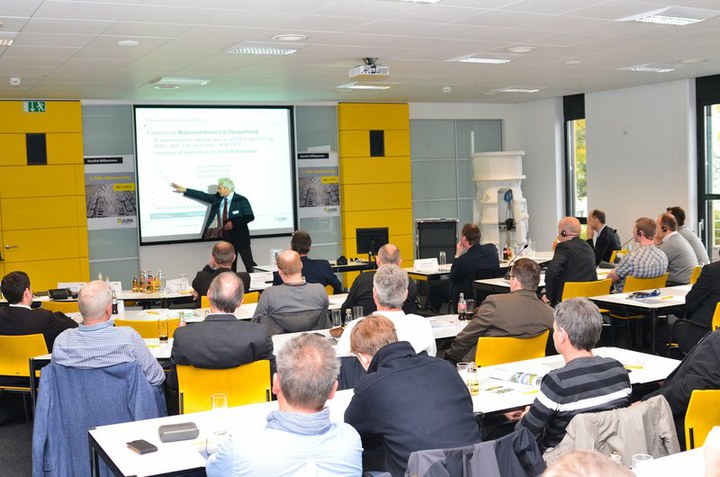 Bernd Ishorst vom IZEG (Informationszentrum Entwässerungstechnik Guss e. V.) informierte die Teilnehmerinnen und Teilnehmer anschließend darüber, welche Auswirkungen die Regenrückhaltung auf privatem Grund für die öffentlichen Kanalnetzbetreiber hat. Über den Einfluss des demografischen Wandels auf die Stadthydrologie referierte Prof. Dipl.-Ing. Dieter Sitzmann von der Hochschule Coburg. Der Vortrag von Dr.-Ing. Jürgen Becker von der Emschergenossenschaft/Lippeverband Essen behandelte das Grundwassermanagement und die damit verbundenen Auswirkungen durch den Klimawandel und die Kanalsanierung.