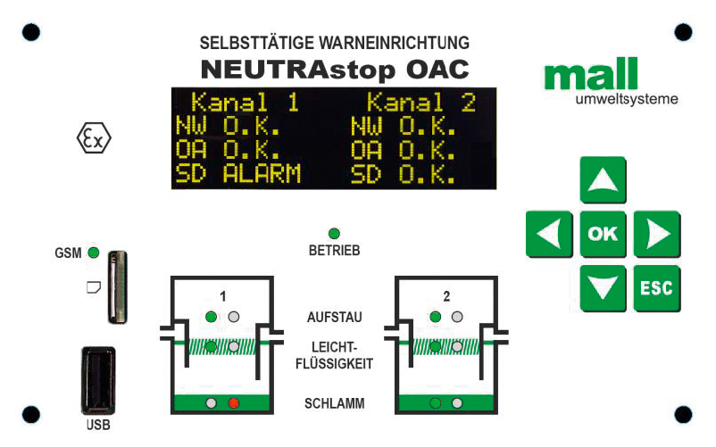 Abscheideranlagen von Mall werden jetzt mit der neuen Warneinrichtung NeutraStop OAC ausgeliefert. Sie löst damit ihre Vorgängerin, die bewährte NeutraStop OASA, ab und wurde modernisiert sowie um einige nützliche Funktionen erweitert.