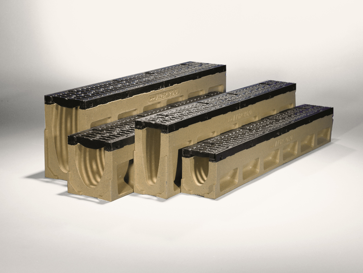 Mit vier unterschiedlichen Nennweiten und vier Bauhöhen sowie dem Zubehör, wie Stirnwänden, Einlaufkästen oder Übergangsstücken bietet ACO nicht nur ein leistungsstarkes, sondern auch überschaubares Linienentwässerungssystem.
