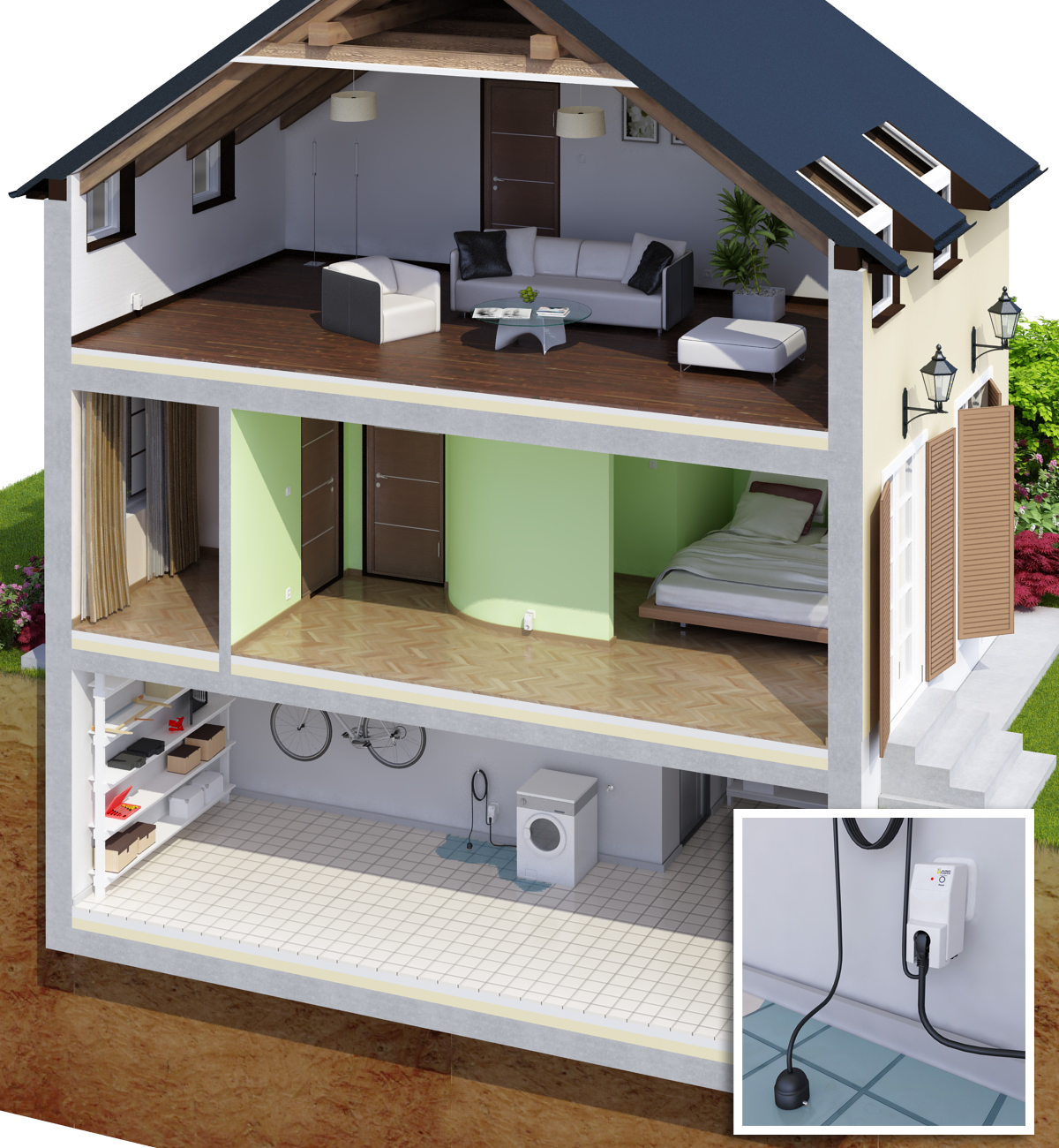 Ob durch eine defekte Waschmaschine oder ein Wasserrohrbruch im Keller; Wasserpfützen sind in der Regel Vorboten für größere Katastrophen. Mit dem neuen Alarmgeber AGE werden schon geringste Wassermengen auf dem Fußboden detektiert. Ein akustischer Alarm sowie die Weiterleitung des Signals über einen potentialfreien Ausgang informiert den Hausbewohner unmittelbar und veranlasst diesen, die Störung schnell zu beheben oder externe Hilfe zu holen. Der potentialfreie Ausgang kann mit einem Funksender ausgestattet werden und somit in ein modernes Smart Home Konzept integriert werden.