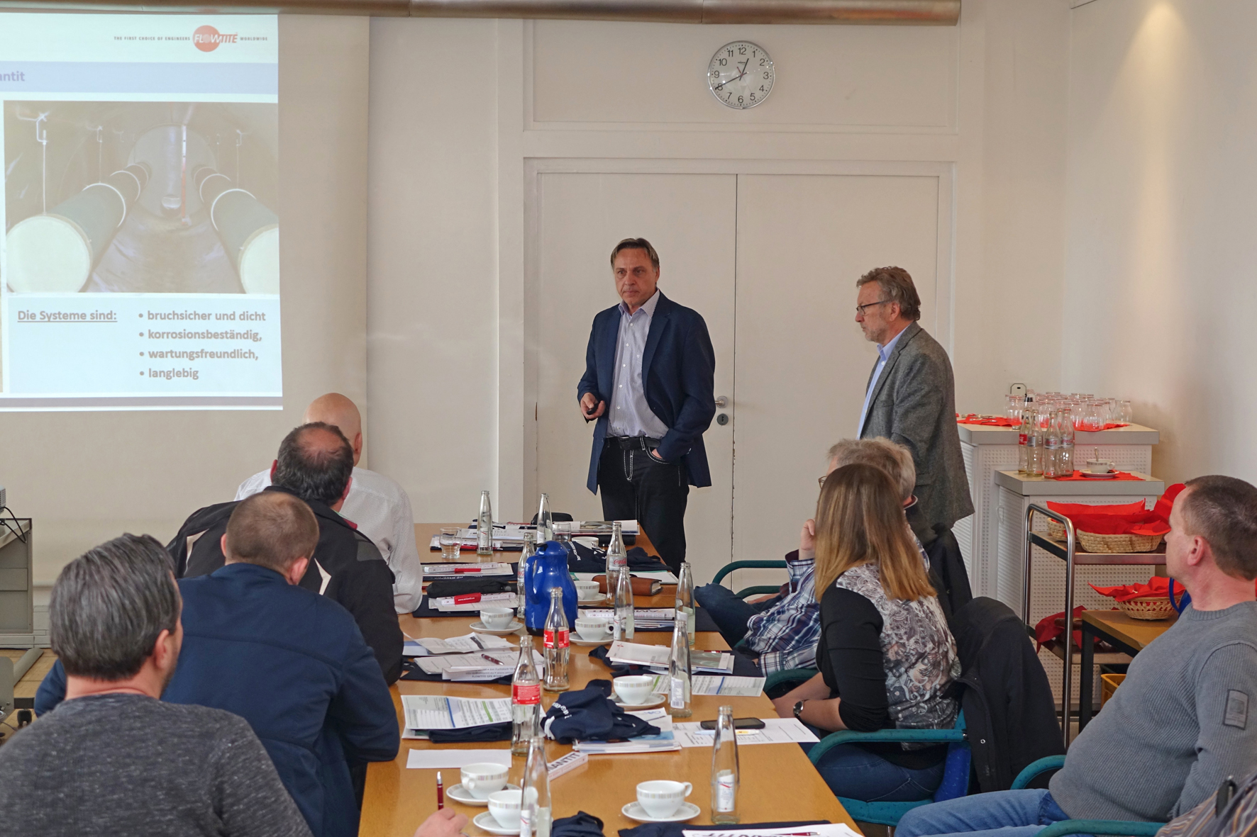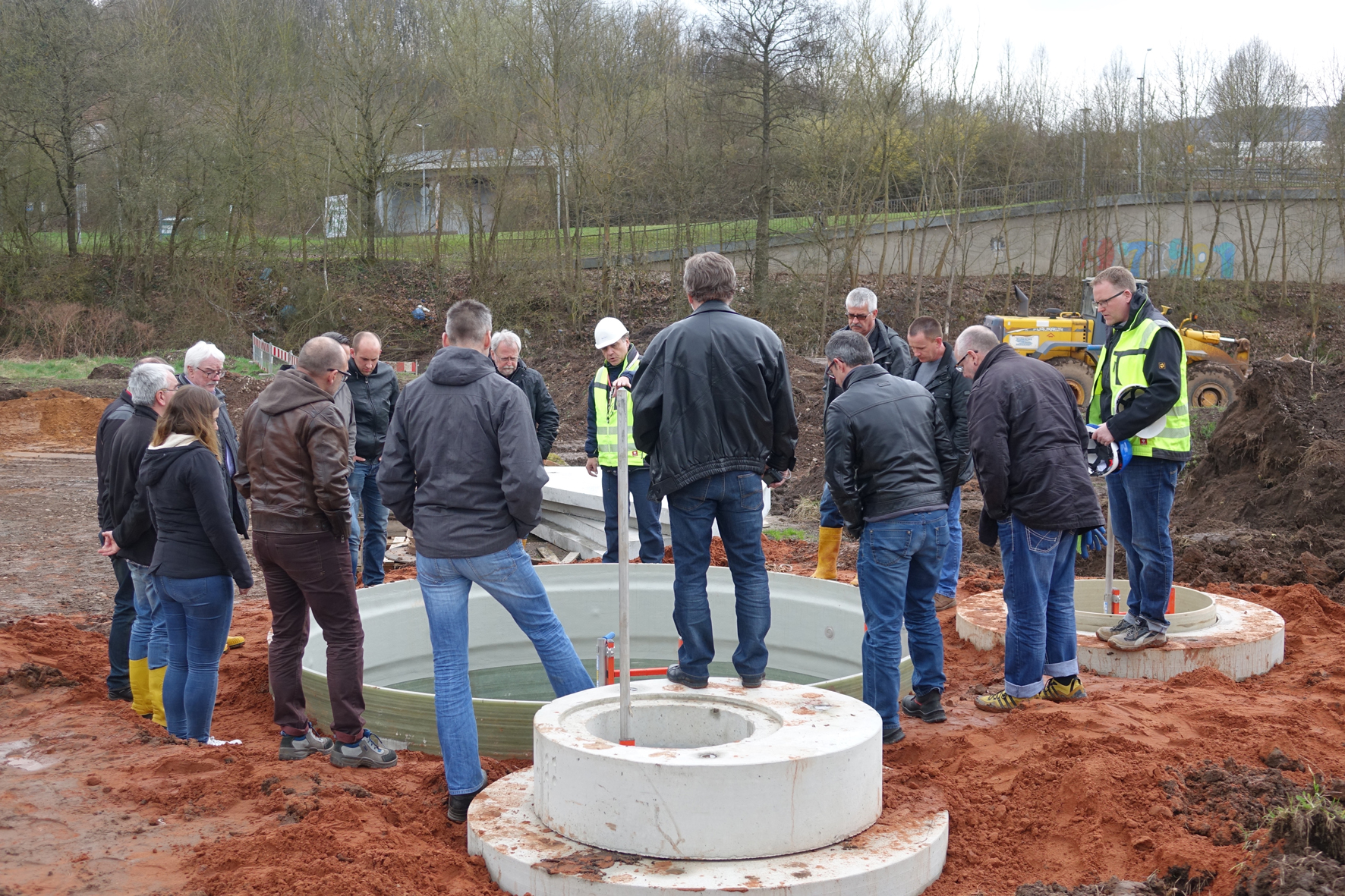 Im Rahmen einer Kanalnachbarschaftsveranstaltung am 22. März im Neunkirchener Rathaus hatten die Teilnehmer die Gelegenheit zur Besichtigung des gerade in der Fertigstellung begriffenen Regenüberlaufbauwerks 18. Zu der Fortbildung für das Betriebspersonal von Abwasseranlagen und Entwässerungssystemen hatte der Landesverband Hessen/Rheinland-Pfalz/Saarland der Deutschen Vereinigung für Wasserwirtschaft, Abwasser und Abfall e. V. (DWA) eingeladen. Bevor es auf die Baustelle ging, konnten sich die Teilnehmer eingehend über die Planung und Durchführung des Projektes informieren, das im Auftrag des Abwasserwerkes Neunkirchen von der Neunkircher Baugesellschaft mbH erstellt wurde.