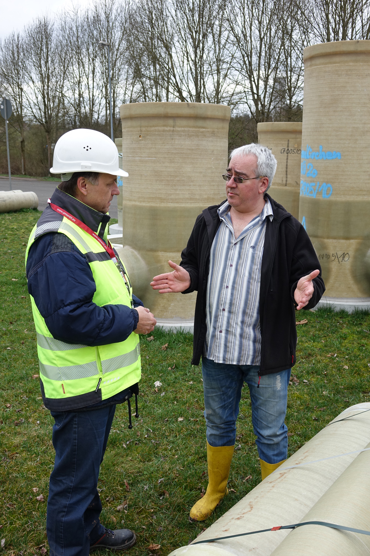 Eine Herstellung entsprechender Bauwerke beispielsweise aus Ortbeton oder aus Betonfertigteilen wäre wesentlich aufwendiger gewesen. Für die GFK-Rohre sprach unter anderen ihr vergleichsweise geringes Gewicht, wodurch die Handhabung auf der Baustelle erheblich erleichtert wird.