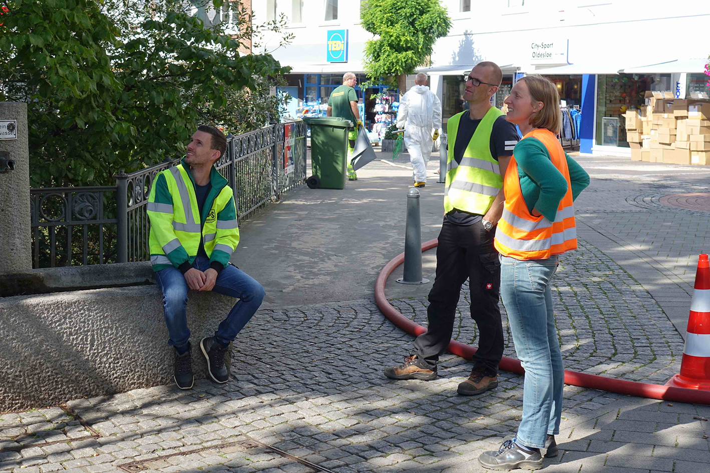 „Trotz dieses bautechnischen Hintergrunds haben wir uns für eine grabenlose Sanierung mit einem Schlauchliner entschieden. Ausschlaggebend waren wirtschaftliche Aspekte und die möglichst geringe Belästigung der Anwohner und Geschäfte in der angrenzenden Fußgängerzone “, so David weiter. Eine Entscheidung, die sich bezahlt gemacht hat: Geschützt durch einen gewebeverstärkten PVC-Preliner konnte der vorgesehene Nadelfilzschlauch ohne Probleme in nur 30 Minuten in die Haltung inversiert und danach ausgehärtet werden.