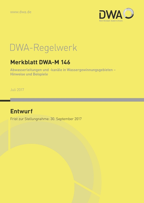 Das Arbeitsblatt DWA-A 142 „Abwasserleitungen und -kanäle in Wassergewinnungsgebieten“ erschien im Januar 2016 in einer überarbeiteten Fassung. Die stark veränderten Vorgaben dieses Arbeitsblatts, die dem Wandel der verfügbaren Techniken und einer stärkeren Fokussierung auf das Bauen im Bestand und Sanieren Rechnung tragen, machten es erforderlich, auch das zugehörige Merkblatt ATV-DVWK-M 146 einer Überarbeitung zuzuführen.