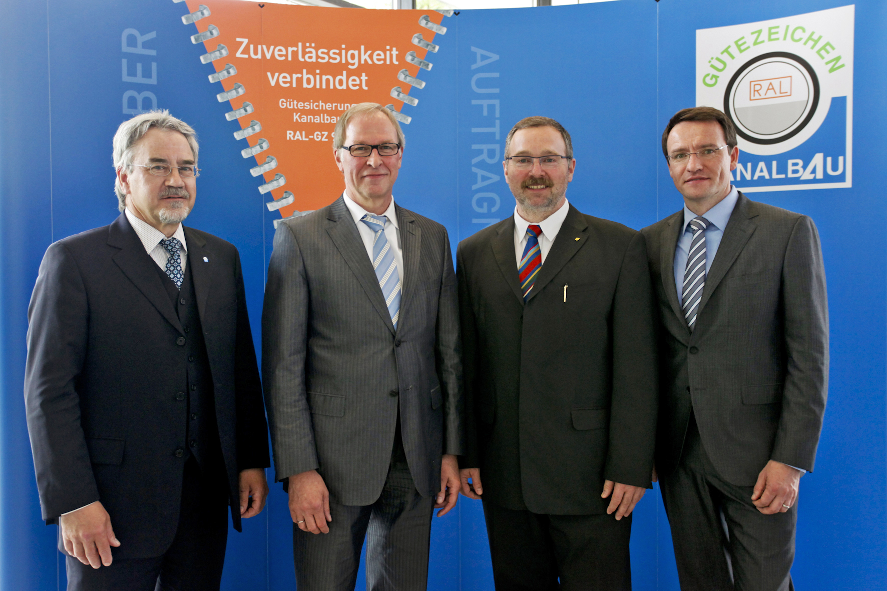 | Zogen auf der Mitgliederversammlung in Ulm eine positive Bilanz: Der Beiratsvorsitzende, Dipl.-Ing. Rudolf Feickert, der stellvertretende Vorstandsvorsitzende, Dipl.-Ing. Dieter Jacobi, der Obmann des Güteausschusses, Dipl.-Ing. Uwe Neuschäfer und der Geschäftsführer der Gütegemeinschaft Kanalbau, Dr.-Ing. Marco Künster (v.li.). |