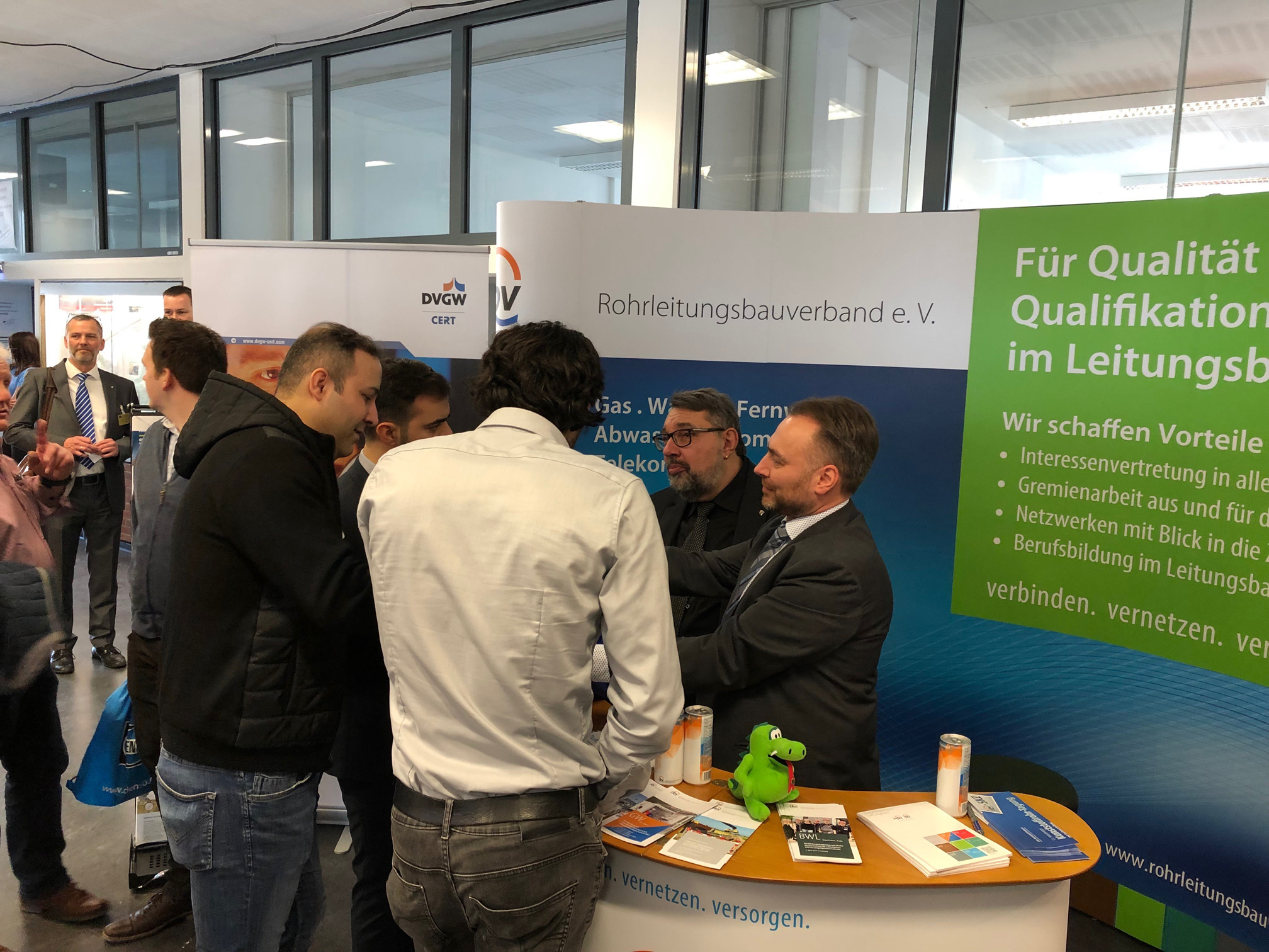 Wie auch in den Jahren zuvor war der Ausstellungsstand des Berufsförderungswerks des Rohrleitungsbauverbandes Anlaufpunkt und hoch frequentierte Kontaktbörse, um sich intensiv über alle aktuellen Themen der Leitungsbaubranche auszutauschen.
