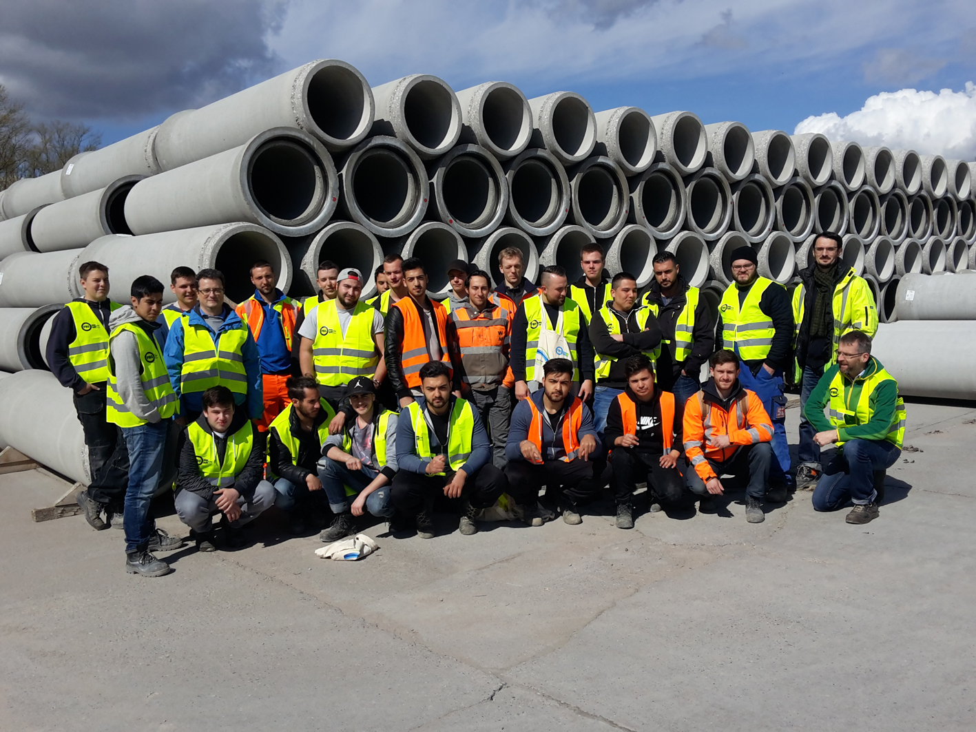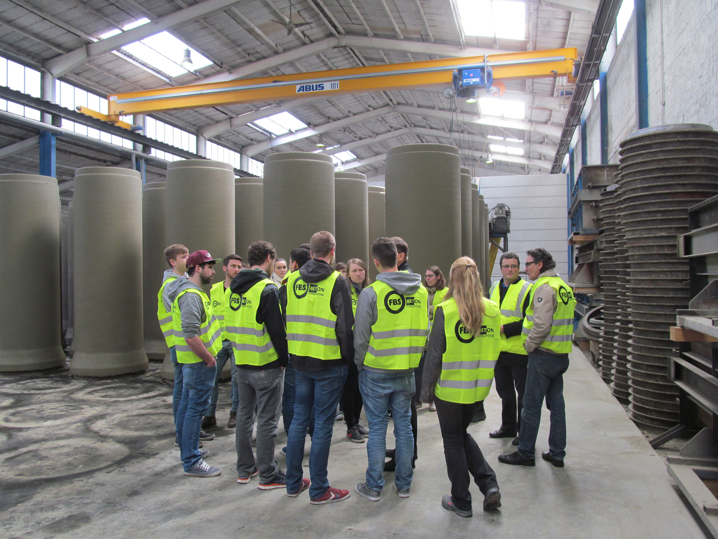 Neben diesen und weiteren theoretischen Veranstaltungen organisierte die FBS im Rahmen ihrer Akademie auch verschiedene Praxistage und Werksbesichtigungen. Im April trafen sich Studierende von der Hochschule Bremen sowie Schüler der Berufsbildenden Schulen aus Leer bei der Firma BERDING BETON GmbH in Steinfeld. Nach einer theoretischen Einführung in das Thema „Planung, Bau und Instandhaltung von Abwasserleitungen und –kanälen“ wurden die Studierenden im praktischen Teil durch das Mitgliedsunternehmen der FBS geführt. Bei dem ausführlichen Rundgang durch das Betonwerk lernten die interessierten Teilnehmer die Fertigung von Betonrohren, Stahlbetonrohren und Schächten in FBS-Qualität kennen.