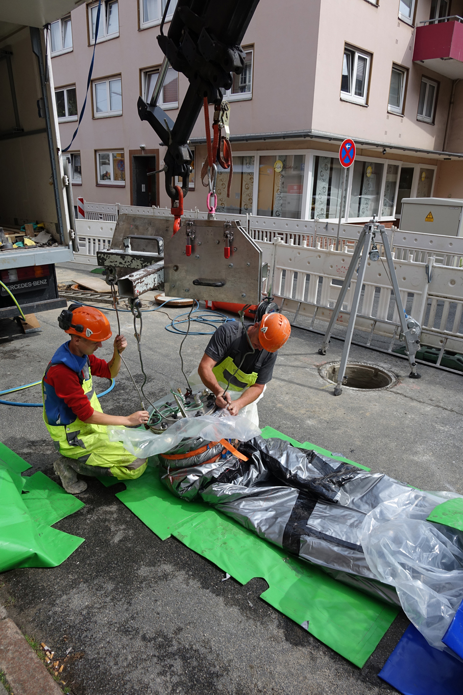 Das Ganze dauert gerade einmal zwei bis drei Stunden – ein Aspekt, von dem sich neben den Auftraggebern auch die Gäste im Rahmen der Baustellenpräsentation überzeugen konnten. „Nach den entsprechenden Vorbereitungen ist der eigentliche Einbau in rund einer halben Stunde erledigt“, erklärt Richard Mohr, DIRINGER&SCHEIDEL ROHRSANIERUNG GMBH & Co. KG.