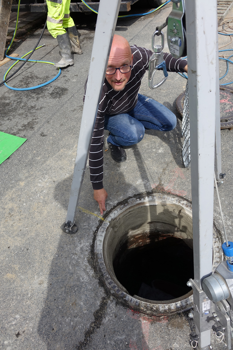 Unter Einbeziehung der räumlichen Verhältnisse und mit Blick auf eine möglichst kurze Bauzeit hat sich der Auftraggeber für eine Linersanierung der insgesamt 126 m langen Haltungen in Nennweitenbereichen von DN 800/800 und DN 700/1050 entschieden. Bei der anstehenden Sanierung von drei Schachtbauwerken beschritt die BEG dann Neuland: Entgegen der ursprünglichen Planung, die Schächte in klassischer Bauweise händisch wieder instand zu setzen, setzte sich ein Sondervorschlag von Hergen Schütt, Stellv. Niederlassungsleiter DIRINGER&SCHEIDEL ROHRSANIERUNG GMBH & Co. KG, Oldenburg, durch.