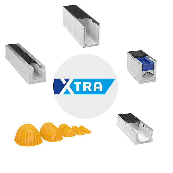 Alle Xtra-Produkte besitzen eine ausgewogene Geometrie. Die Bauform und spezielle Betonmischungen, mit aber auch ohne Armierung, lassen große Flankenhöhen und Nennweiten zu. Sie verbinden ein geringes Gewicht mit hoher Retentionsleistung sowie Stabilität und sind damit wie gemacht für herausfordernden Bedingungen der höchsten Belastungsklassen nach DIN-EN 1433. Planer und Bauunternehmer können das passende System entsprechend relevanter Kriterien, wie Belastung, Regenspende und versiegelter Umgebung, individuell auswählen.