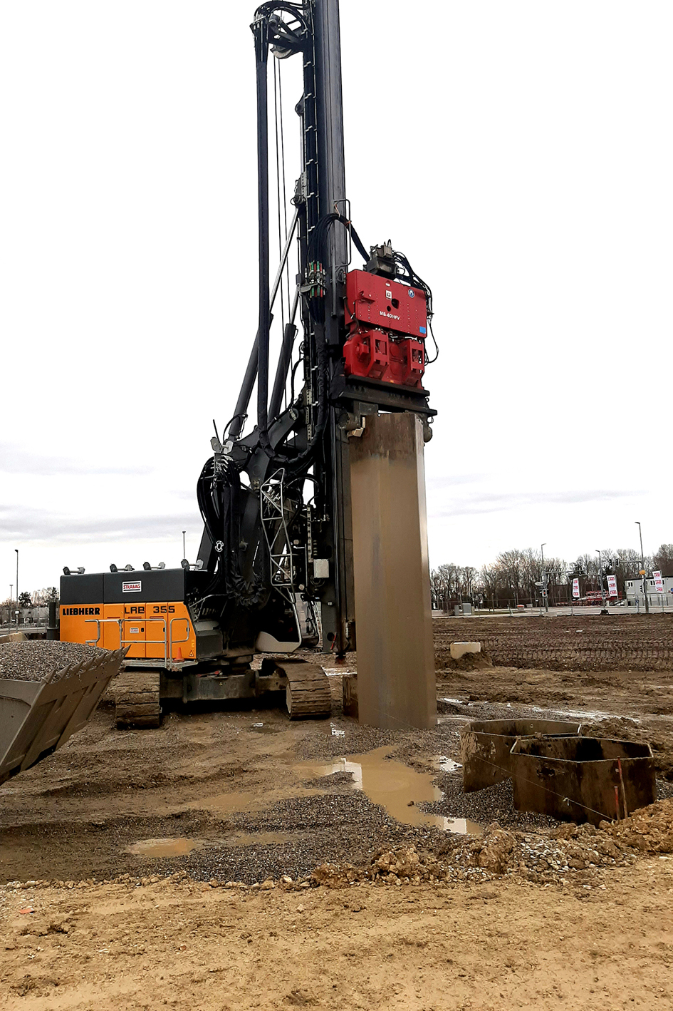 Doch bevor es soweit ist, muss das Erdreich von Altlasten befreit werden: Neben einer Abstromsicherung zum Schutz der Donauauen kam hierbei ein Dreiklang aus Air-Sparging (In-situ-Verfahren zur Entfernung flüchtiger Schadstoffe mittels Luftstroms), Wabenverfahren (Bodenaustauschverfahren) und Bodenwaschanlage zur Anwendung, wobei auch die müller Vibrationsramme von der thyssenkrupp Infrastructure GmbH eine wichtige Rolle spielte.