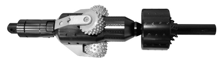 Der 1,55 m lange Rockbreaker für die Pilotbohrung gehört zum zentralen Bestandteil der Felsbohrausrüstung. Er wird über das Außenrohr angetrieben und gesteuert Der Neigungswinkel (Bent sub) lässt sich werksseitig stufenlos von 1,75° bis 2,25° einstellen. Die Rollenmeißel an der Spitze sind in mehreren Varianten erhältlich und werden mit max. 2500 Nm bei bis zu 350 U 1/min über das Innenrohr angetrieben, dessen Steckdrehverbindungen einfach und zeitsparend fixierbar sind. Ortung und Steuerung können mit dem direkt hinter den Rollenmeißeln montierten Sender präziser und bereits nach kurzer Bohrdistanz vorgenommen werden. Der geringe Bentonitverbrauch (von 20-50 l/min) bei gleichzeitig hoher Bohrleistung reduziert Kosten für Beschaffung, Aufbereitung und Entsorgung der Bohrspülung. Direkt nach der Pilotbohrung kann mit einem 6“ Holeopener - in der Endstufe bis 20“- aufgeweitet werden.