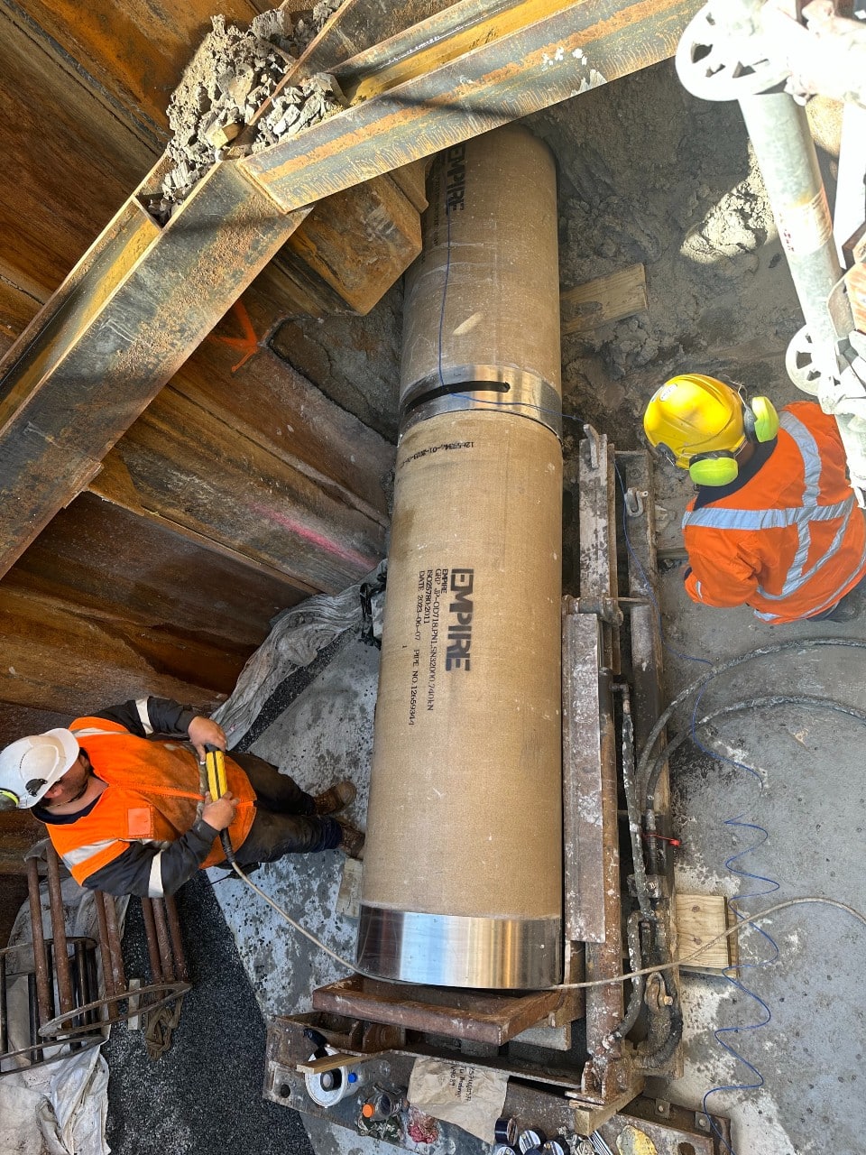 The soft and sandy conditions were identified as an issue prior to commencing work by the contractor. Using a ground improving specialist, Parkinson and Holland constructed vertical jet grouted columns every 2m along the bore path.