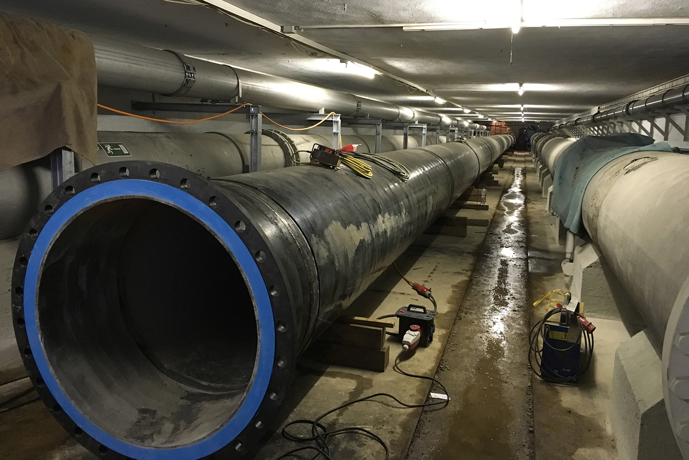 Besonders im Sommer, wenn der Trinkwasserbedarf am größten ist, stößt die alte Druckleitung an ihre Grenzen. Immerhin fließen täglich bis zu 120.000 m3 durch die Leitung. Dann ist die hydraulische Belastung für die Spannbetonrohre äußerst groß, und mit jedem Bar steigt das Risiko eines Rohrbruchs.