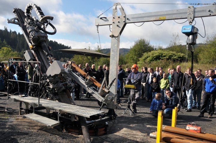 Die Firma Viessmann war ebenfalls mit einem Vortrag vertreten; denn Erdraketen werden auch für den Vortrieb von Erdwärmesonden bis 10 m Länge eingesetzt, z.B. für die Vitosorp Gas-Erdwärmepumpe. Für größere Erdwärmesondenanlagen bietet die TRACTO-TECHNIK den Geodrill 8R an, der auf einem Schacht montiert, Bohrungen mit Neigungen von 35° bis 90° ausführt.