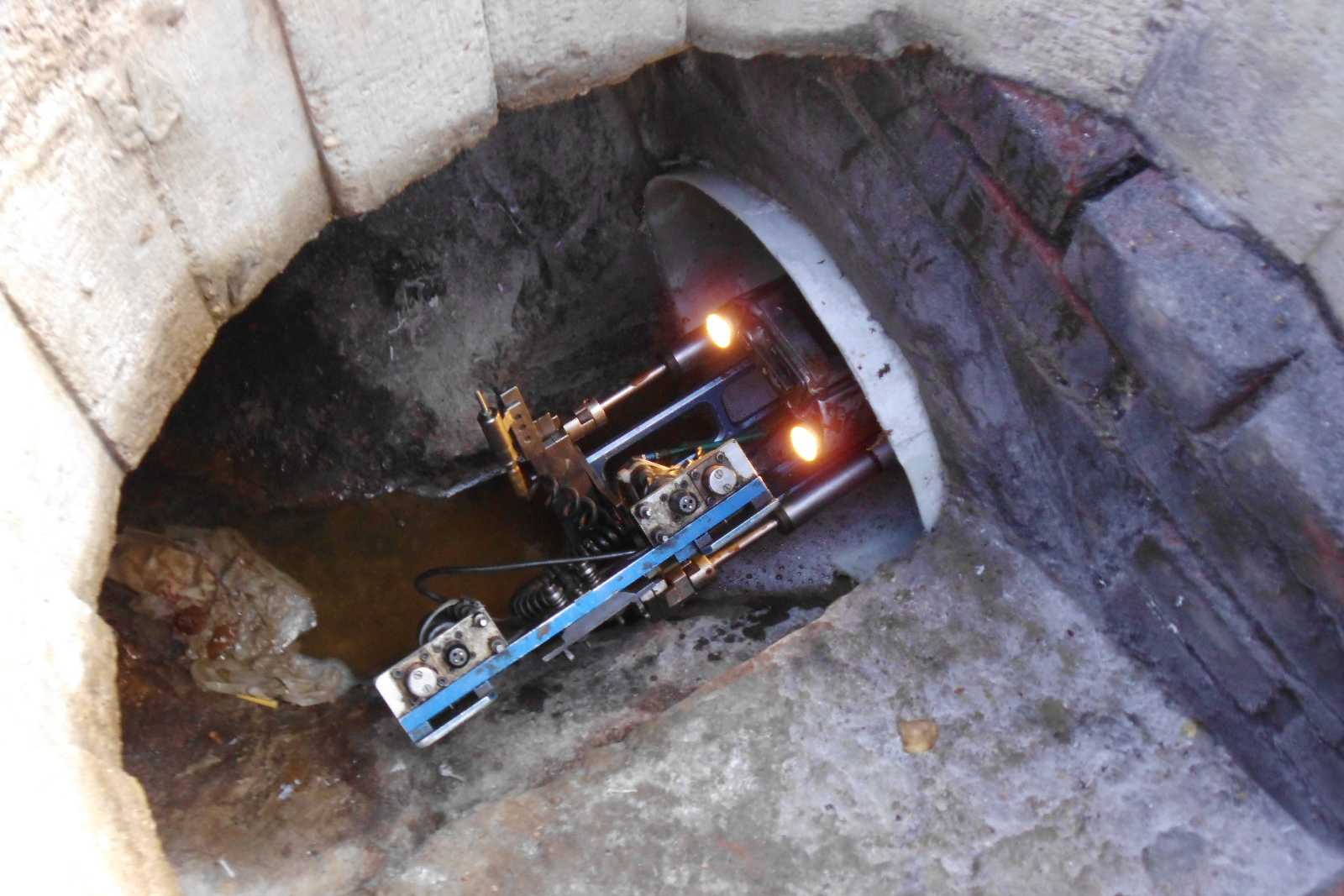 Da ein Neubau aufgrund der baulichen Rahmenbedingungen nicht möglich war, entwickelten und konstruierten die Monteure der D&S Rohrsanierung ein Verpressschild für den vor Ort eingesetzten Roboter. Dieser stellte die Sohle durch frontales Verpressen wieder her. In der Folge konnte erstmals wieder die komplette Haltung befahren werden, sodass eine vollständige Beurteilung des aktuellen Kanalzustands möglich war.