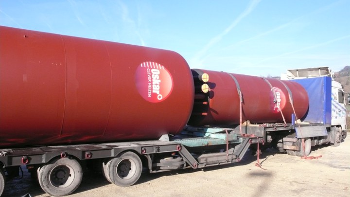 Das Wetter machte es dann doch noch möglich: Ein weiterer Meilenstein des Nahwärmenetzes in der Marktgemeinde Dollnstein konnte noch vor Weihnachten 2013 gesetzt werden, denn die Oskar Sonderschichtspeicher wurden pünktlich in das Haupthaus eingebracht.