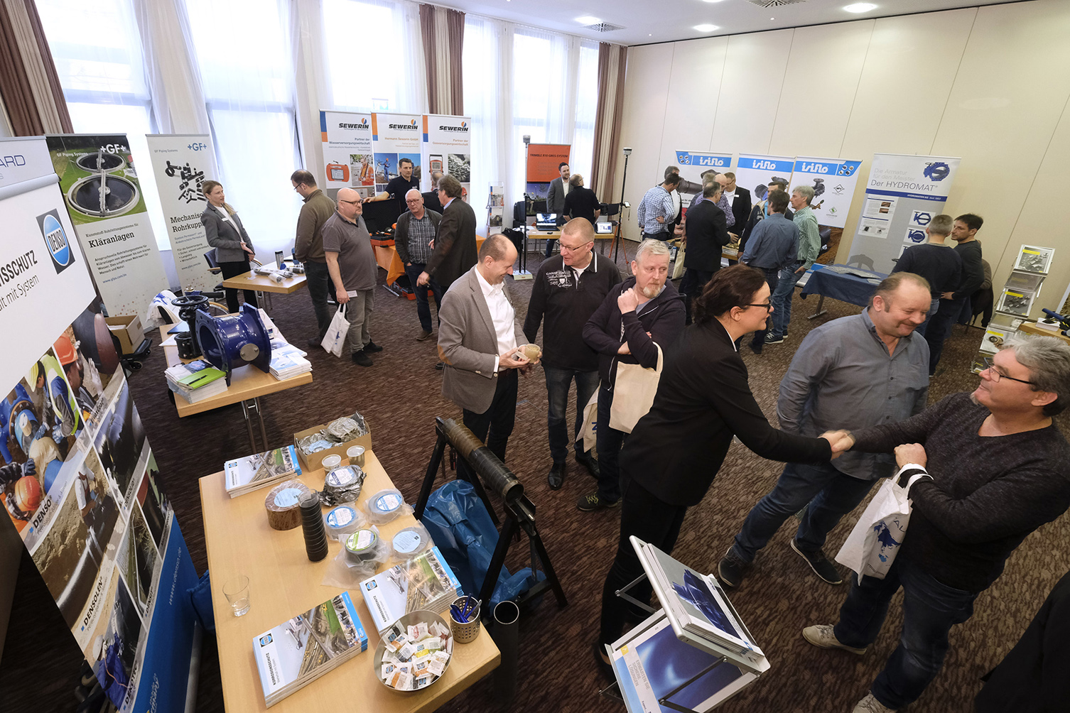 Hierzu trugen auch die Beiträge der Industrievertreter am zweiten Veranstaltungstag bei. Dank des neuen Konzeptes konnten ausgesuchte Händler unmittelbar nach ihren Vorträgen die entsprechenden produktspezifischen Anwendungen im Ausstellungsbereich demonstrieren. Das Themenspektrum der Industrievorträge reichte von Korrosionsschutz und mechanischen Verbindungen über vorgedämmte Rohrsysteme bis hin zur Zustands- und risikoorientierten Rehabilitation von Versorgungsnetzen.