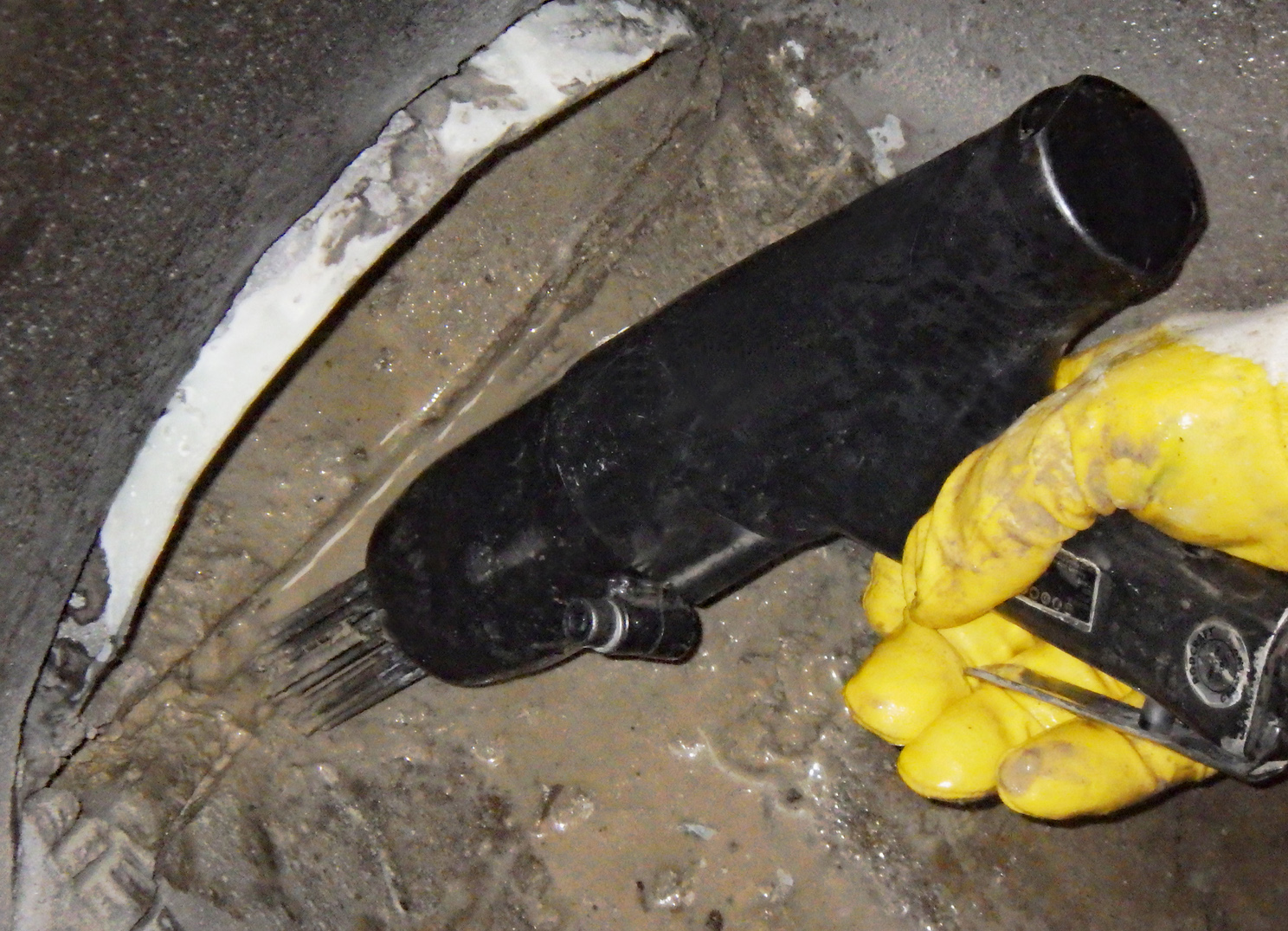 Die Kartuschenverarbeitung von Konudur Flexfit CS, das mit dem druckluftbetriebenen 2-Komponenten-Handaustragsgerät MC-Fastpack Power-Tool direkt an Ort und Stelle ohne separates Anrühren appliziert werden kann, funktioniert selbst unter engen Platzverhältnissen und widrigsten Rahmenbedingungen. Das ausgehärtete Spachtelharz bietet eine hohe chemische und mechanische Beständigkeit, bleibt aber dauerhaft flexibel und kann Längenänderungen des Liners infolge von Schrumpf- oder Temperatureinfluss ausgleichen.