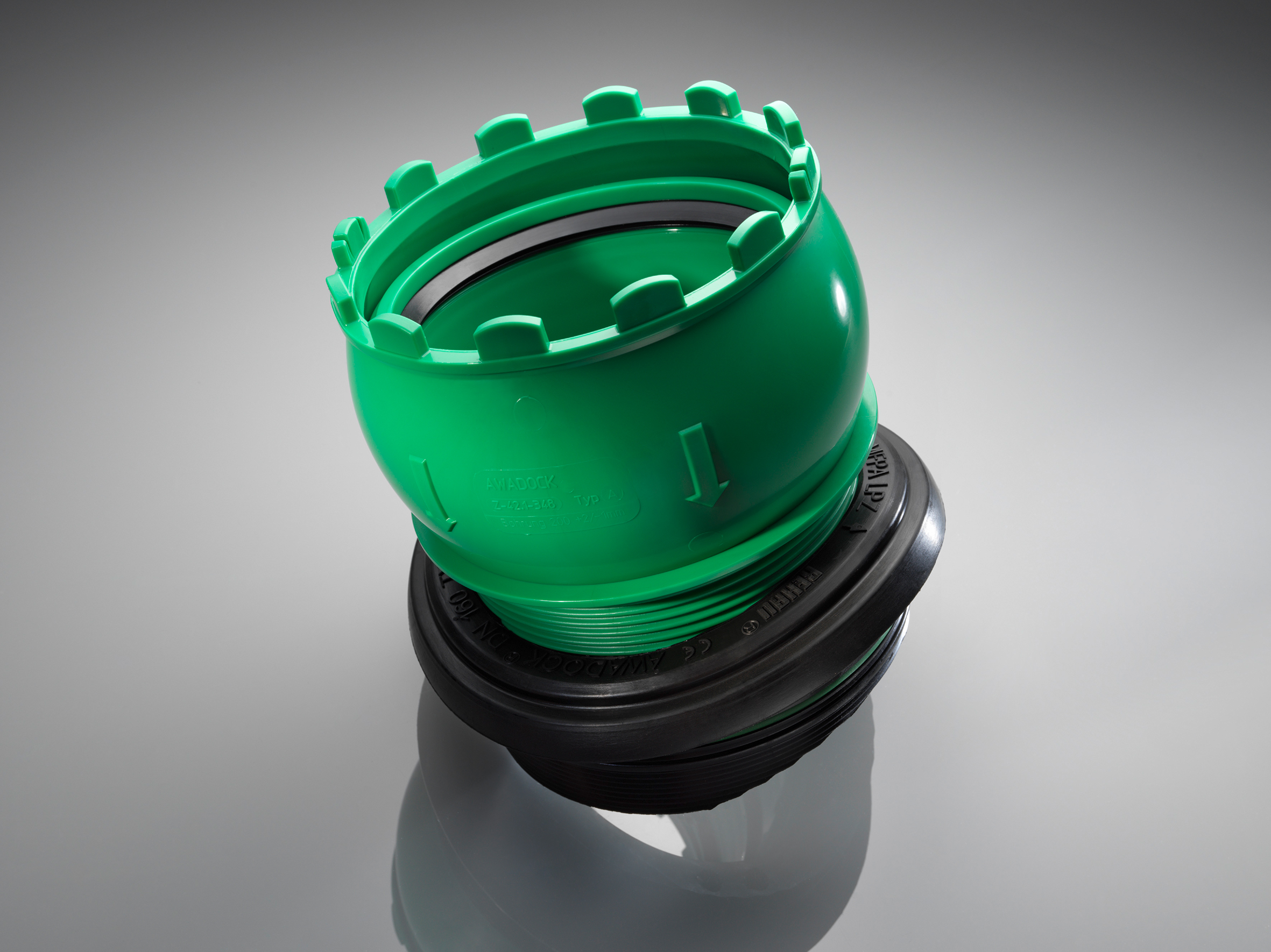 Das nur aus zwei Bauteilen bestehende System AWADOCK ermöglicht einen zuverlässigen, schnellen Einbau und ist in nur wenigen Schritten zu montieren. Die Einschraubkrone erlaubt durch ein Kugelgelenk Abwinklungen von bis zu 7,5°, während Scherlasten gleichzeitig auf ein Minimum reduziert werden können.