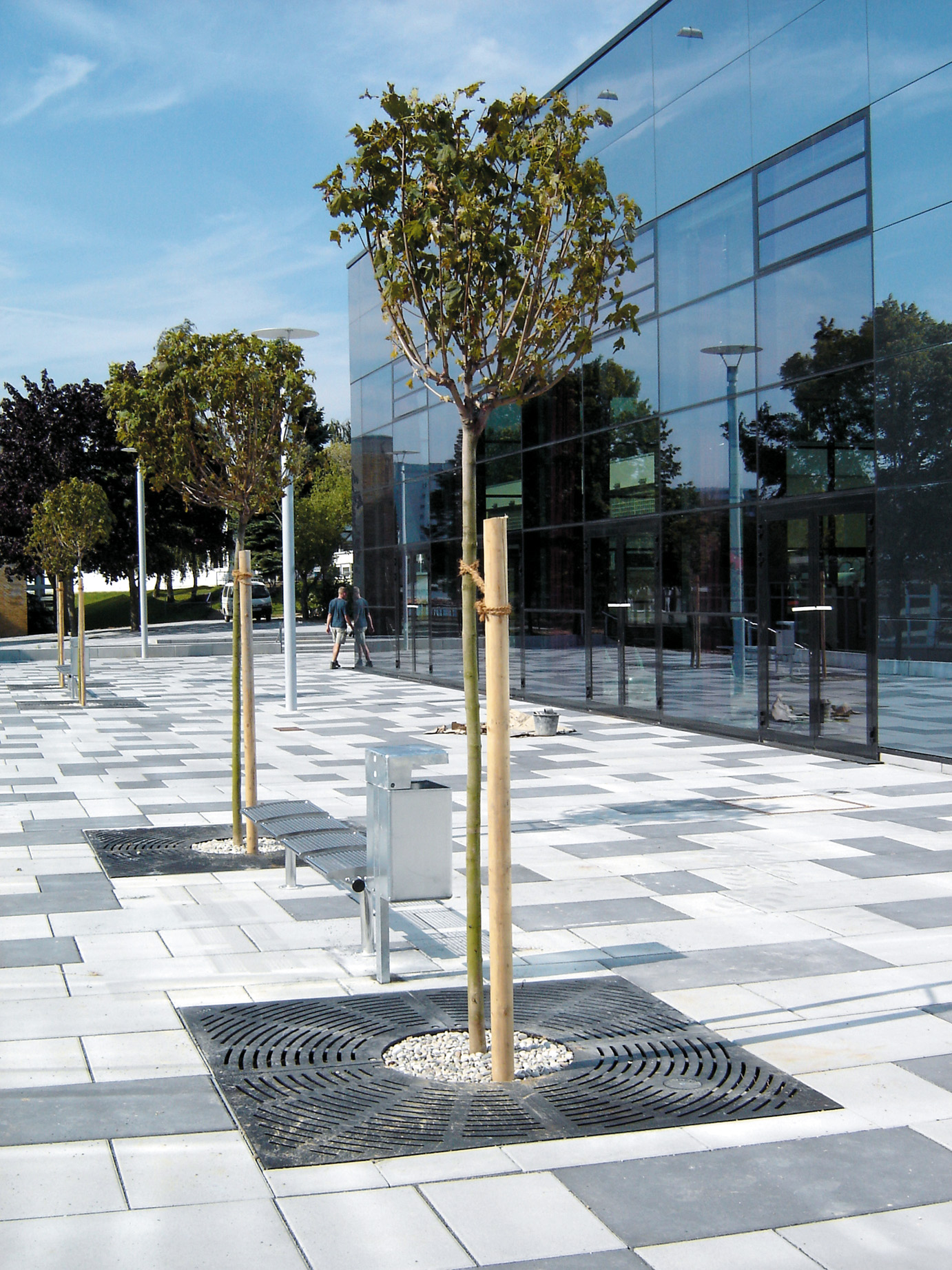 Bäume zählen zu den prägenden Landschaftselementen und machen auch unsere Städte attraktiver und lebenswerter. Zum Schutz neu gepflanzter Bäume im Umfeld von Gehwegen, Fußgängerzonen etc. tragen ACO Baumschutzroste dazu bei, dass der Wurzelbereich vor einer Verdichtung geschützt und eine ausreichende Durchlüftung des Wurzelbereiches sichergestellt wird.