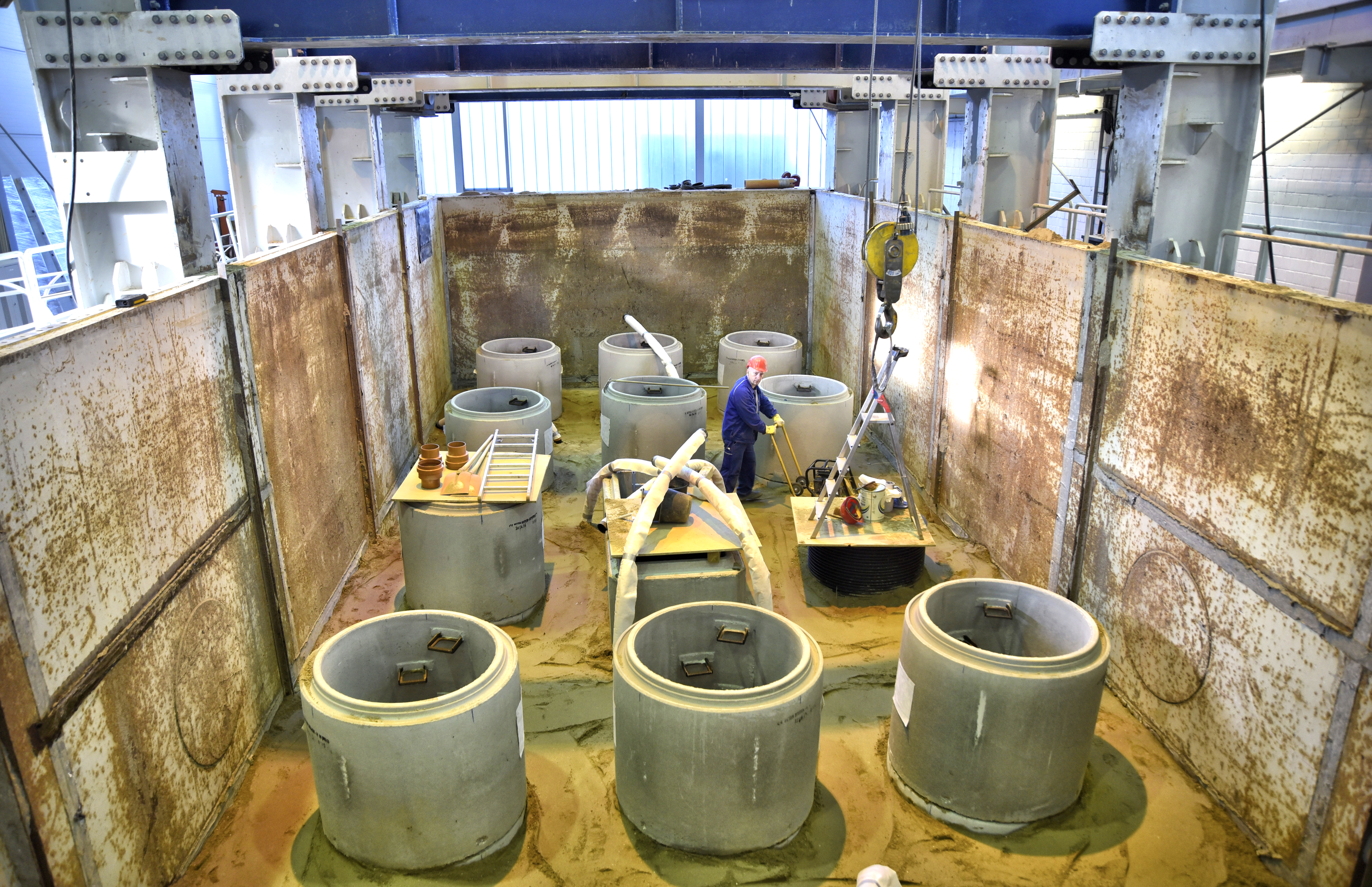 Die Aufgabe bei diesem IKT-Warentest bestand für die Teilnehmer in der Sanierung eines etwa 5 m hohen, kontrolliert vorgeschädigten Betonschachts DN 1000 vor Grundwasseranstieg. Zentrale Elemente des Testprogramms sind die Systemprüfungen und die Qualitätssicherung der Anbieter. Für die Systemprüfungen wurden im IKT-Großversuchsstand insgesamt 13 Schächte aus Betonfertigteilen der Nennweite DN 1000 eingebaut.