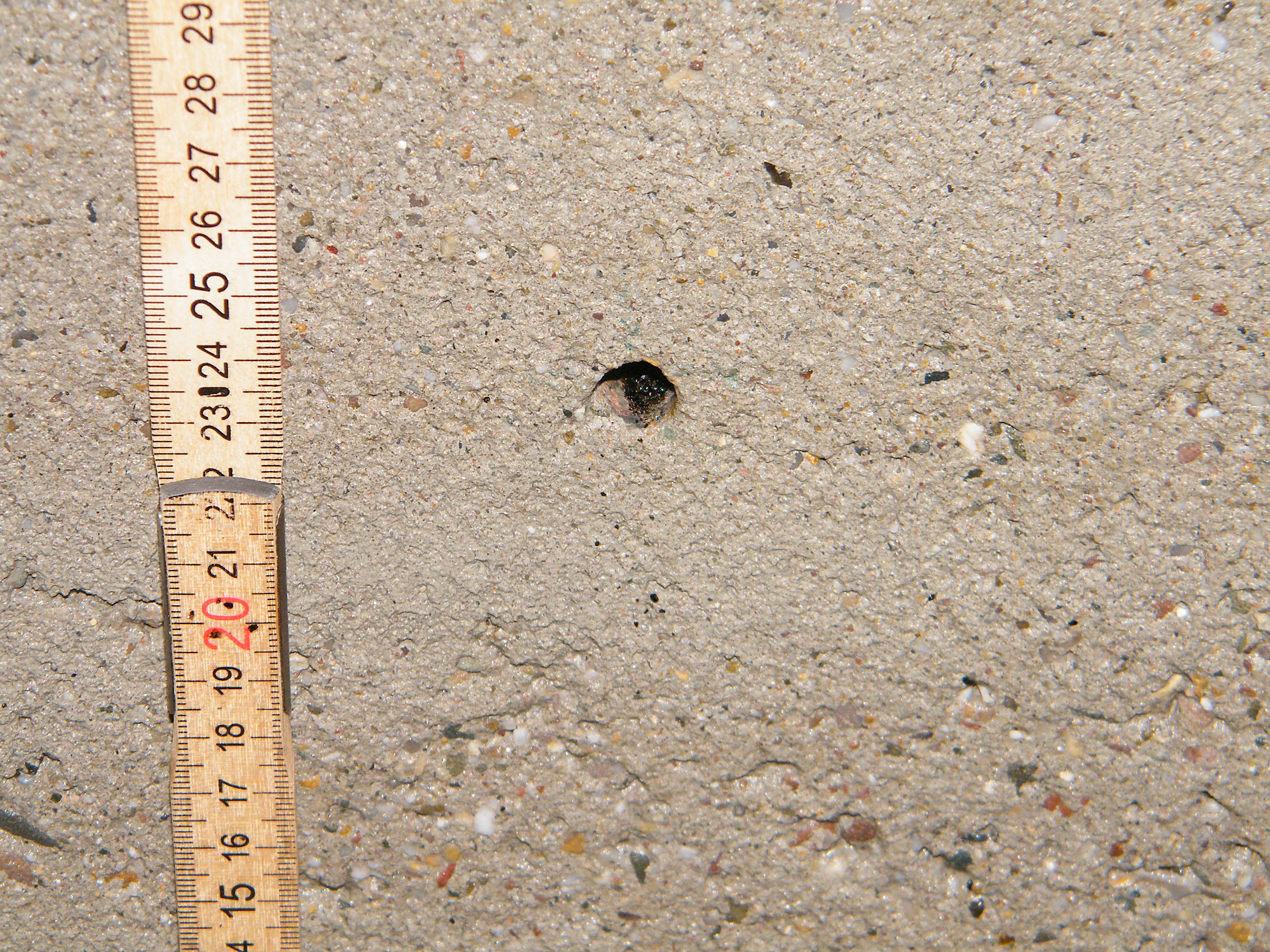 - 8x „Einzelschaden“: punktuelle Schadstelle als Bohrloch mit 10 mm Durchmesser
