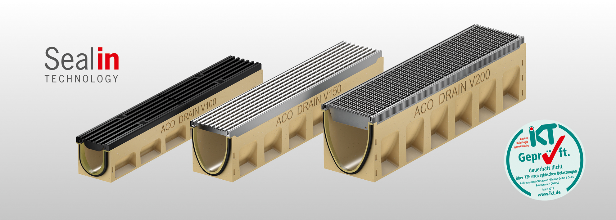 Diese Kombination gewährleistet die notwendige Wasserdichtheit der Entwässerungsrinnen über die von der DIN EN 1433 geforderte Zeitspanne von 30 Minuten hinaus. In einem Langzeittest (Prüfnummer D01059) des IKT in Gelsenkirchen wurde für die integrierte Dichtung eine Dichtheit von über 72 Stunden nach zyklischen Belastungen nachgewiesen.