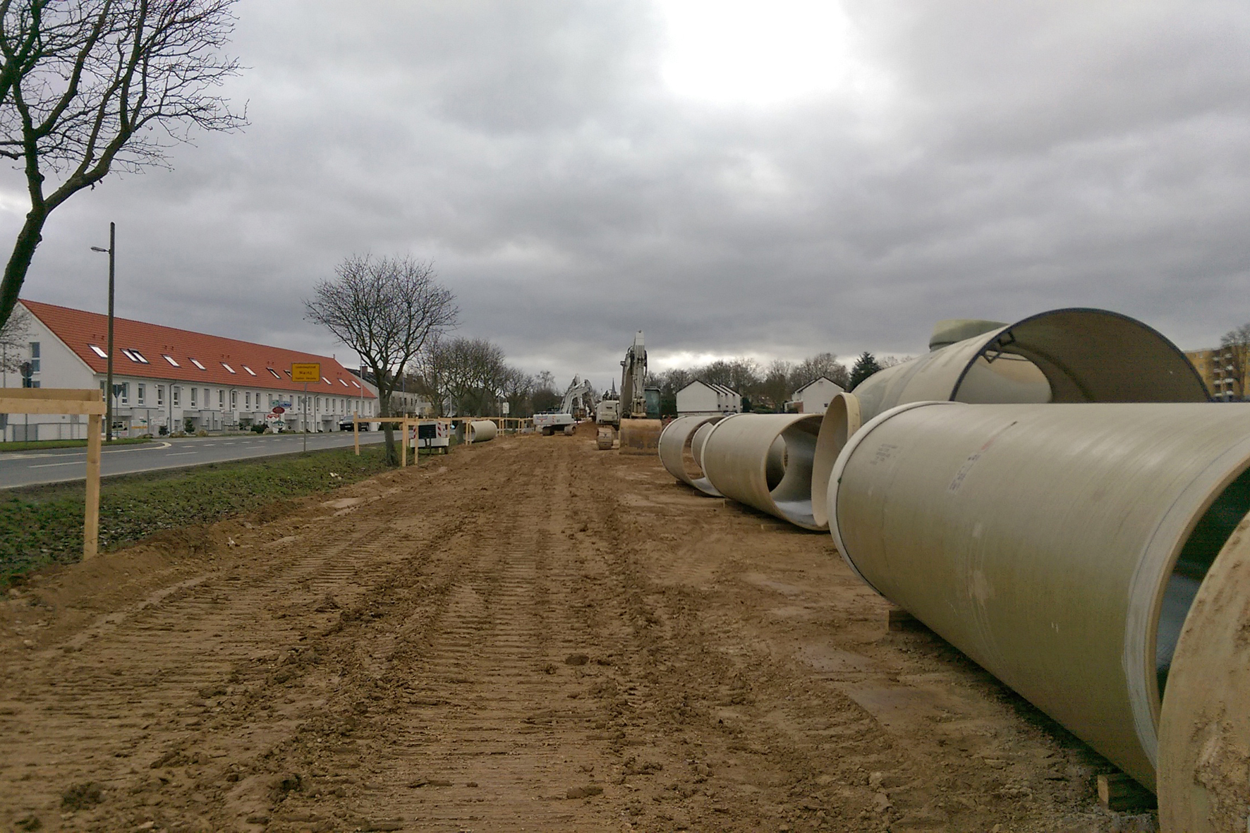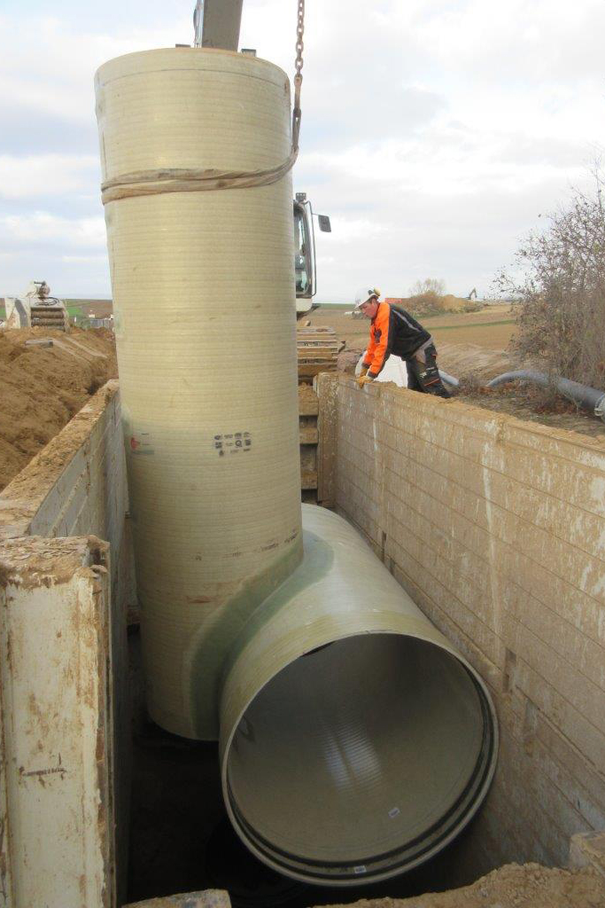 Da die Baugrubenbreite entsprechend der Anforderungen des Auftraggebers zum Schutz der vorhandenen Bäume in einem Teilabschnitt der Trasse so gering wie möglich gehalten werden sollte, konnten die GFK-Rohre mit ihrer vergleichsweise geringen Wandstärke ebenfalls punkten.
