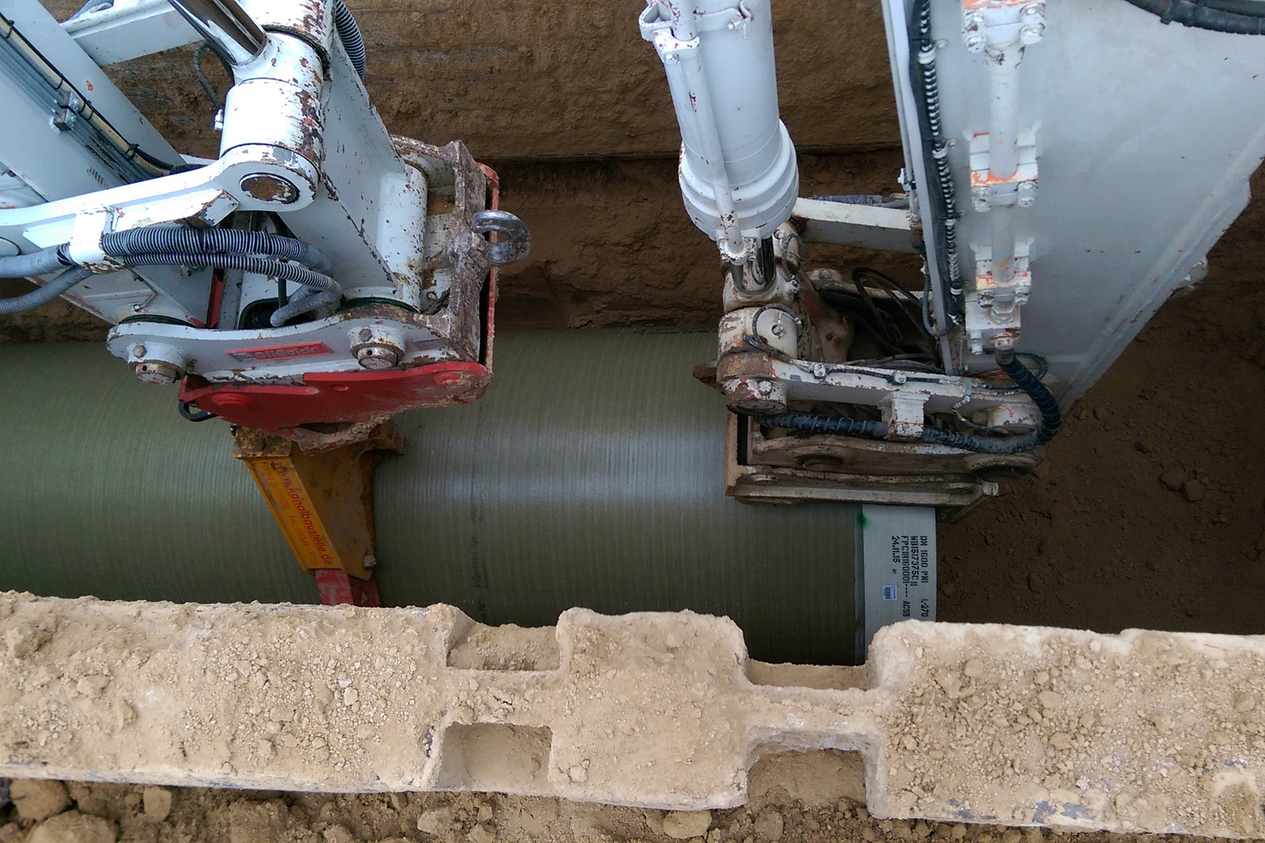 Insgesamt verlegt wurden 158 m GFK-Rohre DN 1000, 239 m GFK-Rohre DN 1400 sowie 1.030 m GFK-Rohre DN 1600; darüber hinaus sind insgesamt 22 Schachtbauwerke, u.a. Tangentialschächte, Absturzschächte und Vereinigungsbauwerke, aus dem Werkstoff GFK produziert und eingebaut worden, sodass die Durchgängigkeit der positiven Materialeigenschaften von GFK im Kanalsystem sichergestellt ist.
