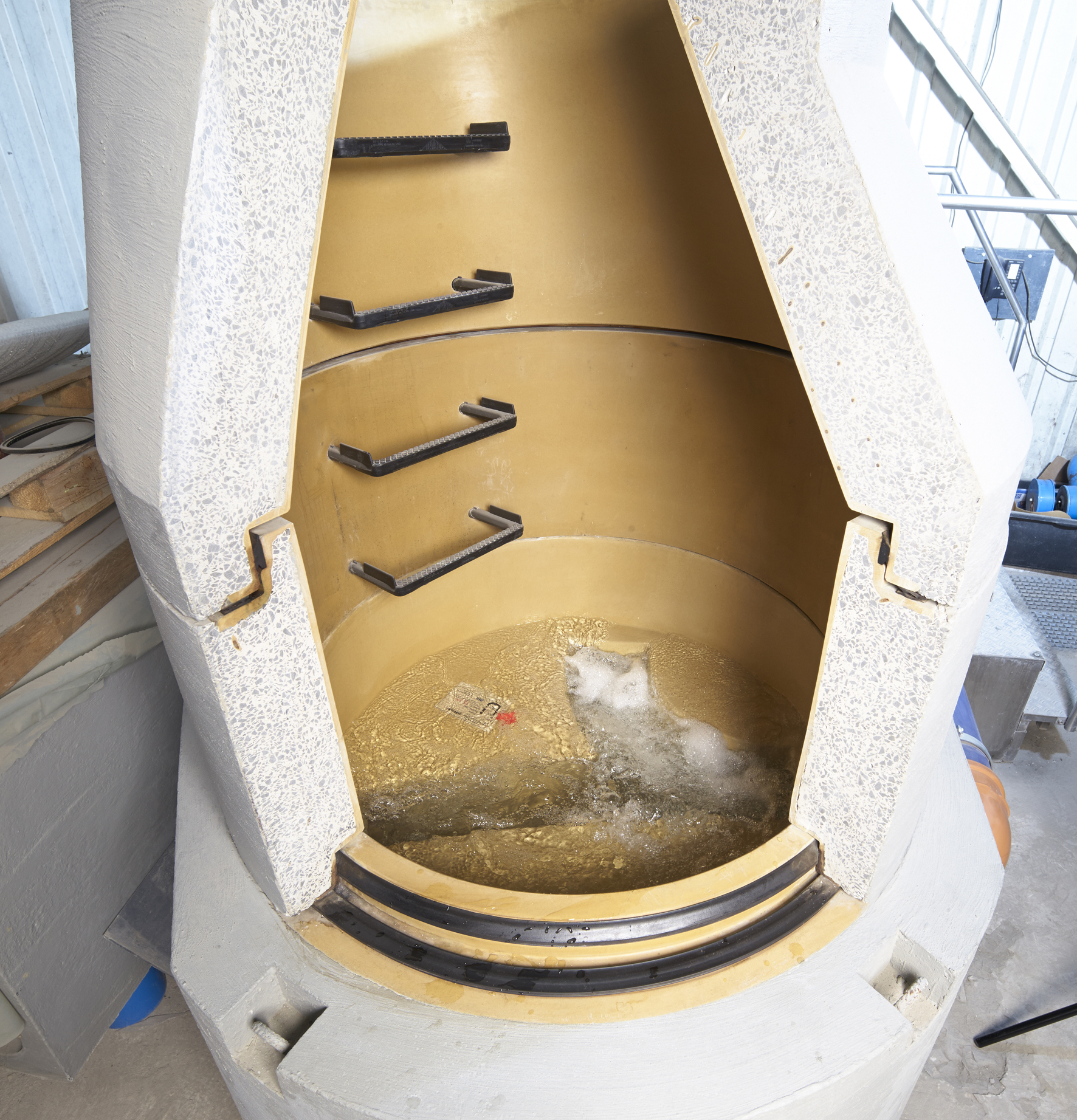 Ein anderes Beispiel ist der FABEKUN Spülschacht, der gemeinsam mit der Funke Kunststoffe GmbH entwickelt wurde und Maßstäbe in der Abwassertechnologie gesetzt hat. Der Spülschacht sammelt auch kleine Niederschlagsmengen. Sobald das Speichervolumen von rund 500 l erreicht ist, wird ein einfacher Mechanismus ausgelöst, die angestaute Wassermenge schießt schwallartig in den angeschlossenen Kanal und reinigt ihn so ohne Einsatz vom Fremdenergie. Fasel: „Da der Spülschacht mit wenig Bauteilen auskommt, ist der Wartungsaufwand in der Regel gering.“