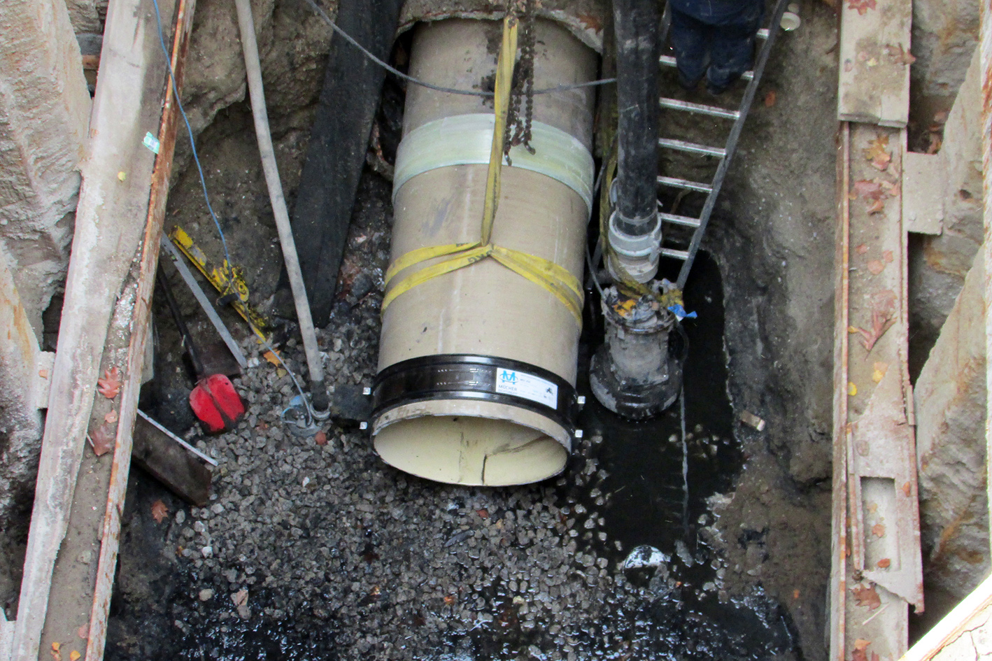 „Wir haben über lange Zeit Erfahrungen mit Mücher-Produkten und wissen um die hohe Qualität und Zuverlässigkeit der Produkte. Speziell in der Wolfener Straße bei den GFK-Rohren mit der Nennweite DN 800 war einfache und schnelle Arbeit notwendig, zumal wir hier mit Grundwasser zu „kämpfen“ hatten. Hier kam uns das Spann-Verschluss-System der Mücher-Übergangskupplung MSC 830 zu Gute, das ein schnelles und einfaches Handling ermöglichte“, erinnert sich Eduard Merkel, Polier bei Frisch & Faust.