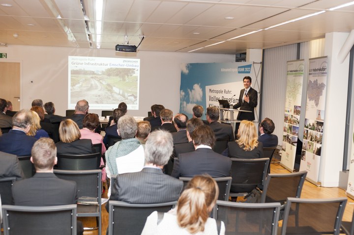 Die Metropole Ruhr präsentierte sich in Brüssel, im Herzen Europas, der Europäischen Kommission. Mit dabei war zum ersten Mal auch die Emschergenossenschaft: Dr. Uli Paetzel, seit Anfang Februar neuer Vorstandsvorsitzender der Emschergenossenschaft, stellte den Vertretern der EU-Kommission dabei den Umbau des Emscher-Systems vor. Von der offenen „Köttelbecke“ zur idyllischen Flusslandschaft – die Revitalisierung der Emscher und ihrer Nebenläufe ist eines der symbolträchtigsten Projekte im Rahmen des Strukturwandels im Ruhrgebiet.