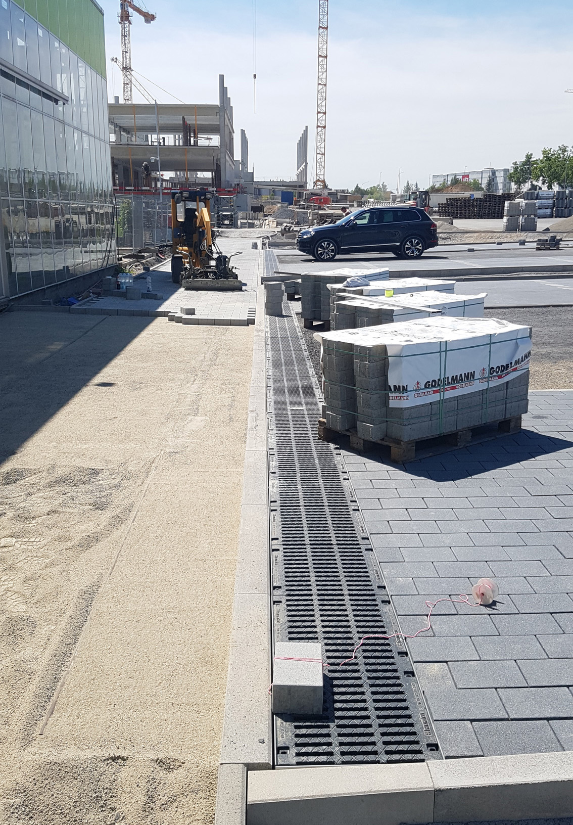 Drainfix Clean Rinnen auf Parkflächen - Anspruchsvolle Gewerbearchitektur in Heilbronn: Rinnenfilter von Hauraton sammelt und reinigt Wasser