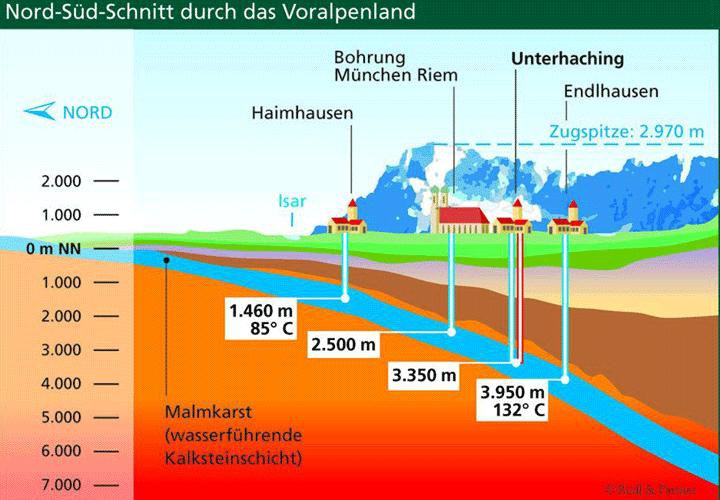 Die erste Bohrung in Unterhaching hatte in 3.350 Metern Tiefe thermales Wasser mit einer Temperatur von 123° Grad Celsius und einer Schüttung von 150 Litern pro Sekunde Wassermenge ergeben. Nach den vorläufigen Ergebnissen der zweiten Bohrung kann die komplette Wassermenge aus der ersten Bohrung ohne weiteren Pumpstromaufwand in die Erde zurückgeführt werden, da die Schüttungsrate deutlich höher ist, als bisher erwartet. Dies wird Wirtschaftlichkeit des Projektes weiter erhöhen, weil zusätzlicher Stromaufwand für die Rückführung des Wassers nicht erforderlich sein wird.