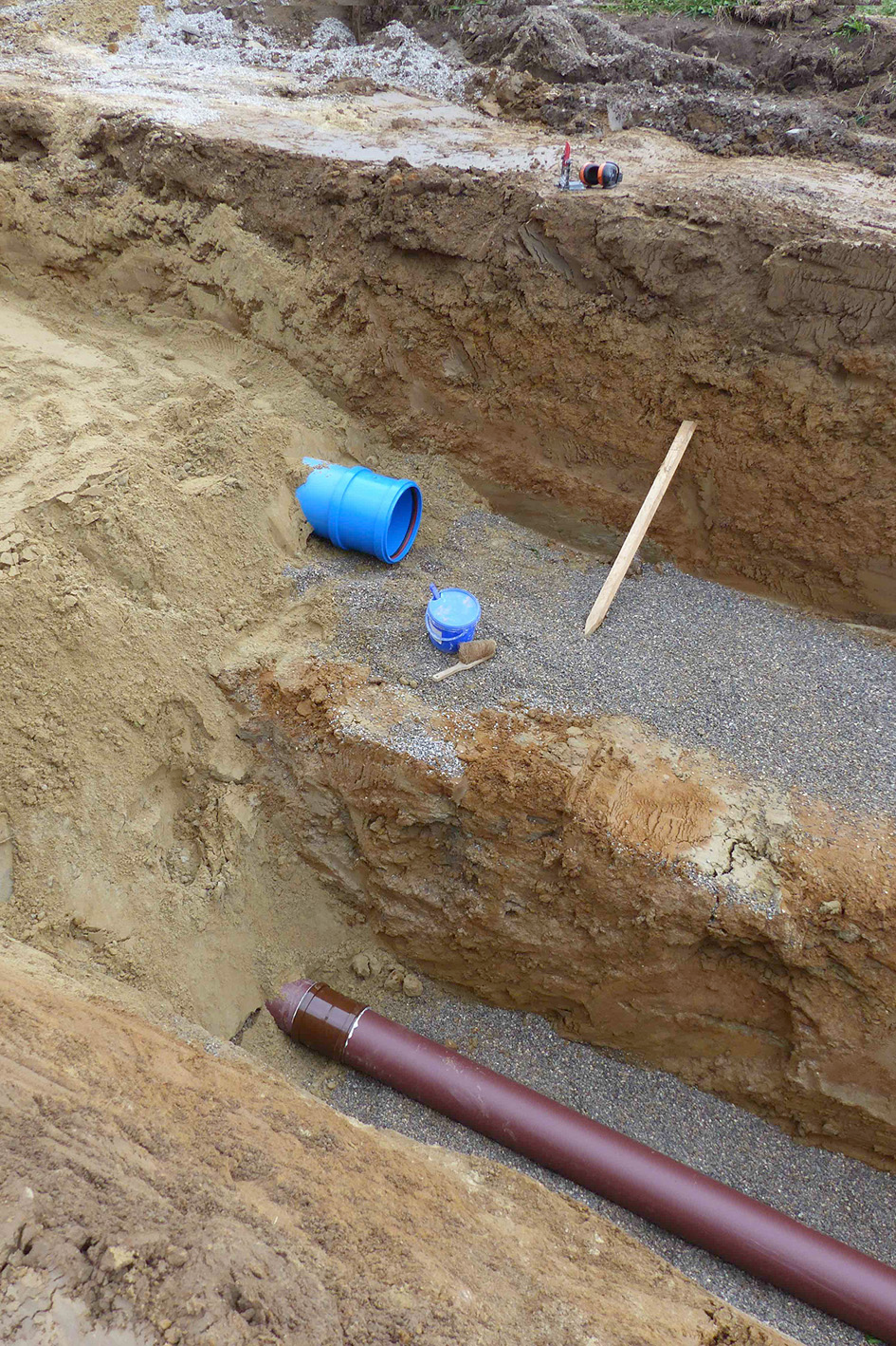 Die Rohre aus PVC-U verfügen über eine erhöhte Wanddicke und eine Mindestringsteifigkeit von 12 kN/ m2 (SN 12) bzw. 16 kN/m2 (SN 16). Auch die Formteile sind wandverstärkt (SDR 34). Rohre und Formteile von DN/OD 110 bis DN/OD 500 sind mit einer fest eingelegten FE®-Dichtung ausgestattet, die von DN/OD 630 bis DN/OD 800 mit einer fest integrierten CI®-Dichtung. Was die Gemeinde Röfingen bei ihrer Suche nach einem verlässlichen Partner überzeugte, war auch der Systemcharakter der Produkte von Funke.