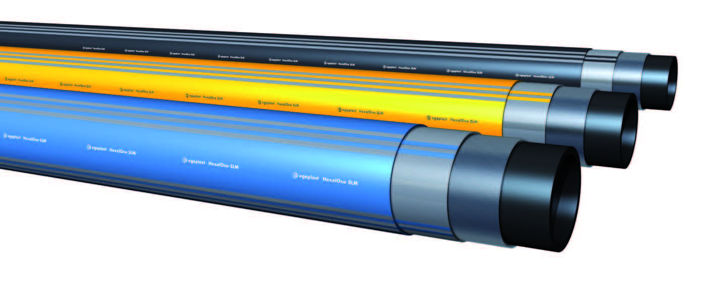 Das HexelOne® SLM ist ein eigenverstärktes Hochdruckrohr aus PE, das auch grabenlos verlegbar ist. Bei der DCT-Ausführung ist die Qualitätsprüfung integriert, da Leiterbänder eine Prüfung des Rohrsystems auf Unversehrtheit direkt nach der Verlegung ermöglichen. Die verlegte Leitung ist außerdem dauerhaft ortbar. SLA®- oder 3L Sicherheitsrohr-Varianten mit Permeationsbarriere oder als leckageüberwachtes System sind ebenfalls möglich. HexelOne® ist als Gesamtsystem mit Formteilen und Verbindungstechnik vom TÜV SÜD für den Einsatz für erhöhte Betriebsdrücke zertifiziert.