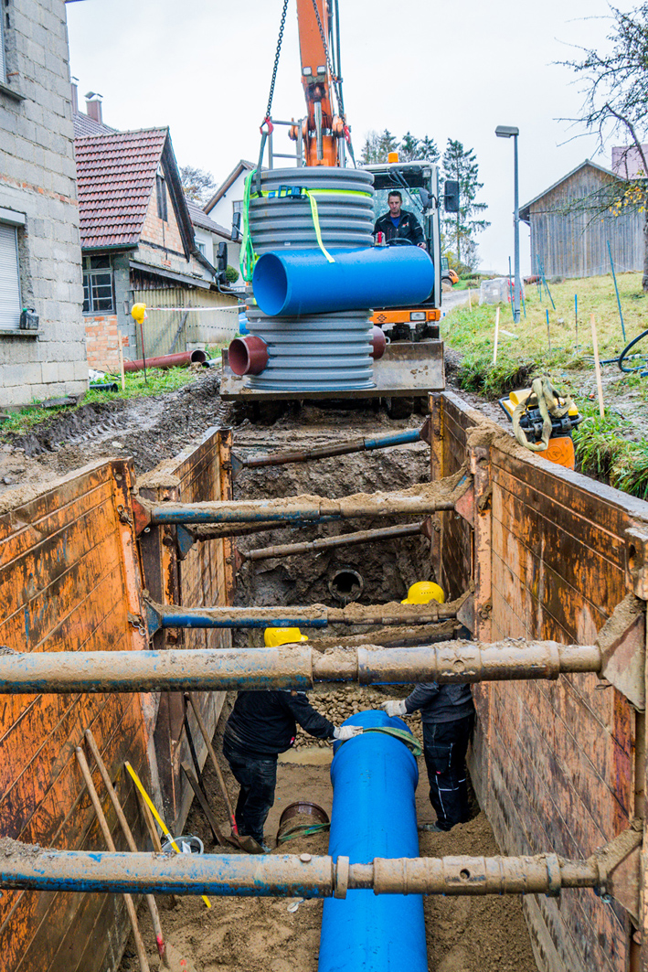 Laupheim liegt rund 20 km von Ulm entfernt. In den letzten Jahren ist die Einwohnerzahl der baden-württembergischen Stadt kontinuierlich gestiegen. Wie beliebt die Wohngegend ist, zeigte sich kürzlich auch am Beispiel des neuen Baugebiets „Am Mäuerle“. Im ersten von insgesamt drei Bauabschnitten wurden zwischen Oktober 2020 und Juli 2022 36 Bauplätze erschlossen, um der weiterhin hohen Nachfrage nach Bauplätzen in Laupheim nachkommen zu können. Dabei wurde in dem ersten Abschnitt auch die bestehende Straße „Steigle“ als Erschließungsstraße ausgebaut. In den zwei weiteren Abschnitten sollen fünf zusätzliche Bauplätze hinzukommen. Außerdem ist die Sanierung des unteren Bereichs der Straße „Am Mäuerle“ sowie die Errichtung eines Kreisverkehrs in der Hasenstraße geplant. Im gesamten Baugebiet ist eine Trennkanalisation samt Retentionszisternen vorgesehen. In diesem Zuge wurde auch der bestehende Mischwasserkanal im unteren Bereich der parallel zum „Mäuerle“ verlaufenden Straße „Steigle“ umgestellt.