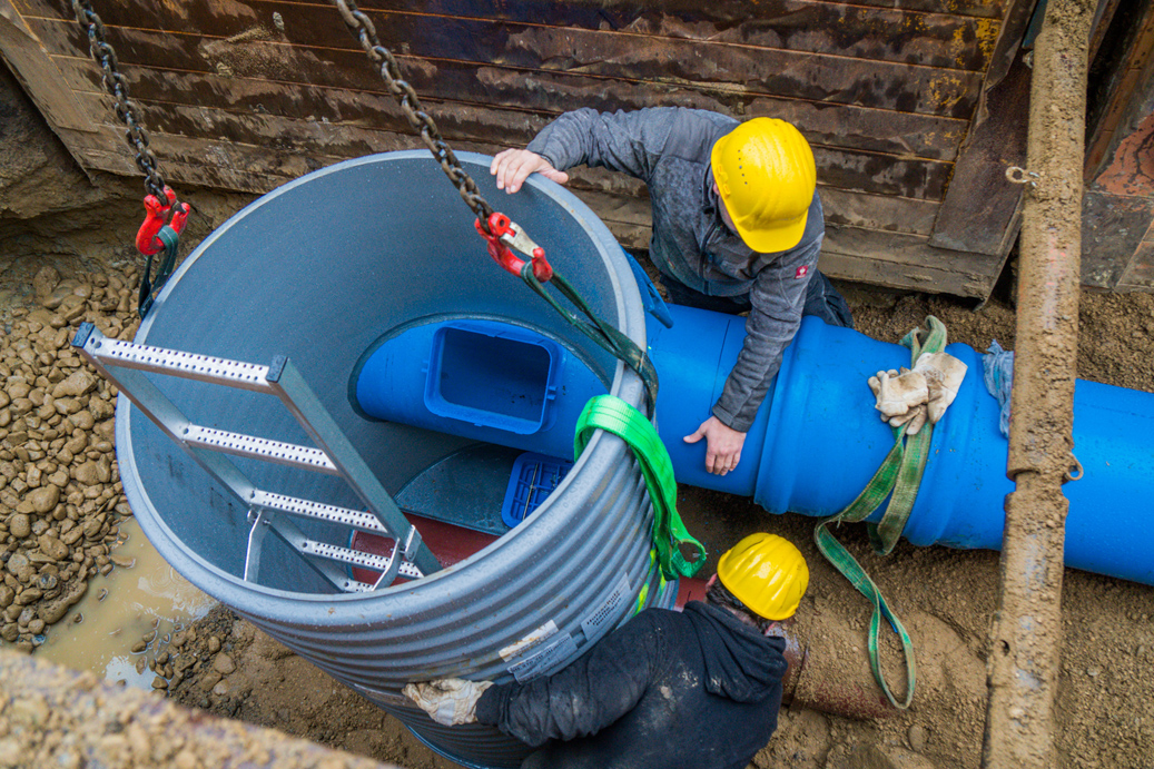 Vier Kombischächte DN 1000 von Funke für Baugebiet in Laupheim