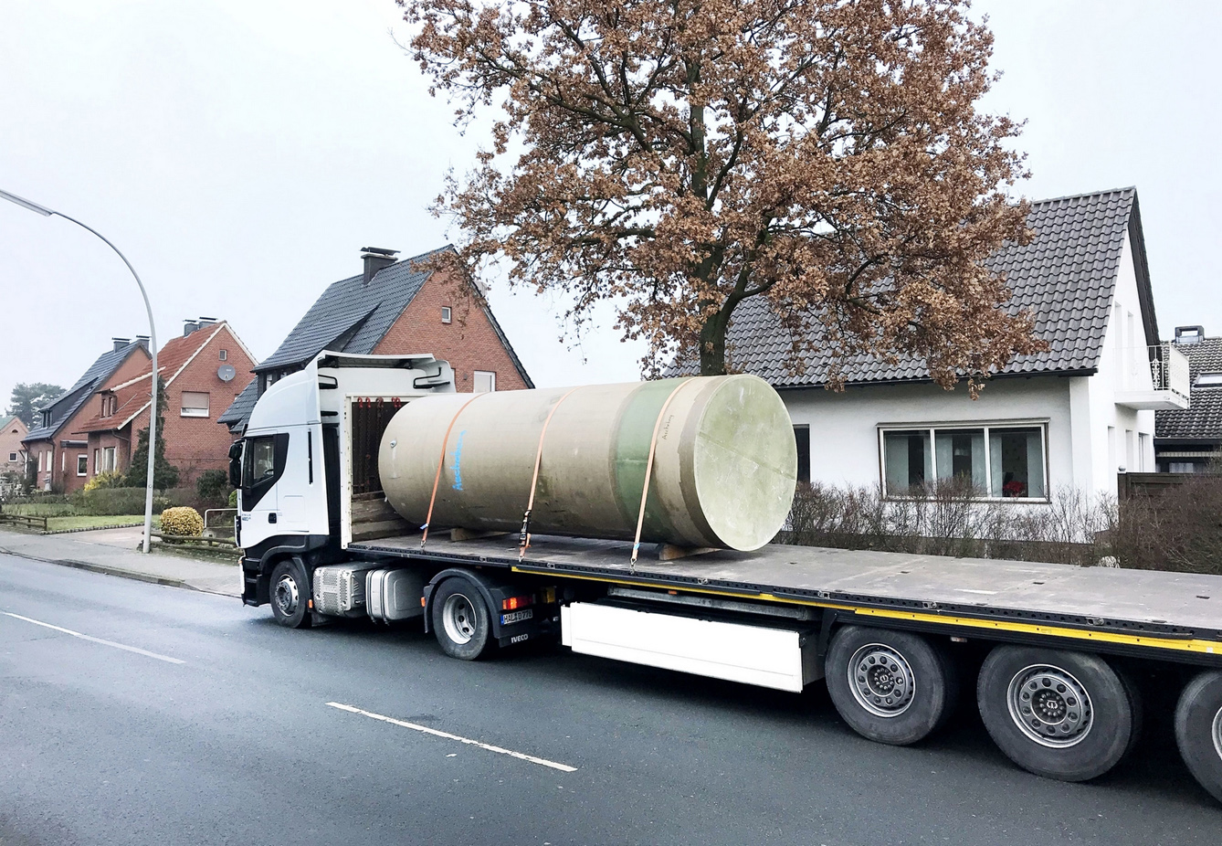 Um ein optimales Sanierungsergebnis zu erzielen, wird der Schacht zunächst passgenau vorgefertigt. Hierzu müssen die genauen Dimensionen des Bestands bestimmt und ausgemessen werden. Auf Grundlage der erhobenen Daten erfolgt die Erstellung eines Plans für das Schacht-Fertigteil und die Abstimmung mit dem Kunden. Nach der erteilten Freigabe findet die Produktion im Werk des jeweiligen Herstellers statt. „Bei der Herstellung werden die Ausbildung des Gerinnes und die Bohrungen für Anschlüsse gleich mitberücksichtigt. Dies spart unseren Kolonnen auf der Baustelle wertvolle Zeit“, so Stentrup. Es folgt der Transport des Fertigteils zur Baustelle.