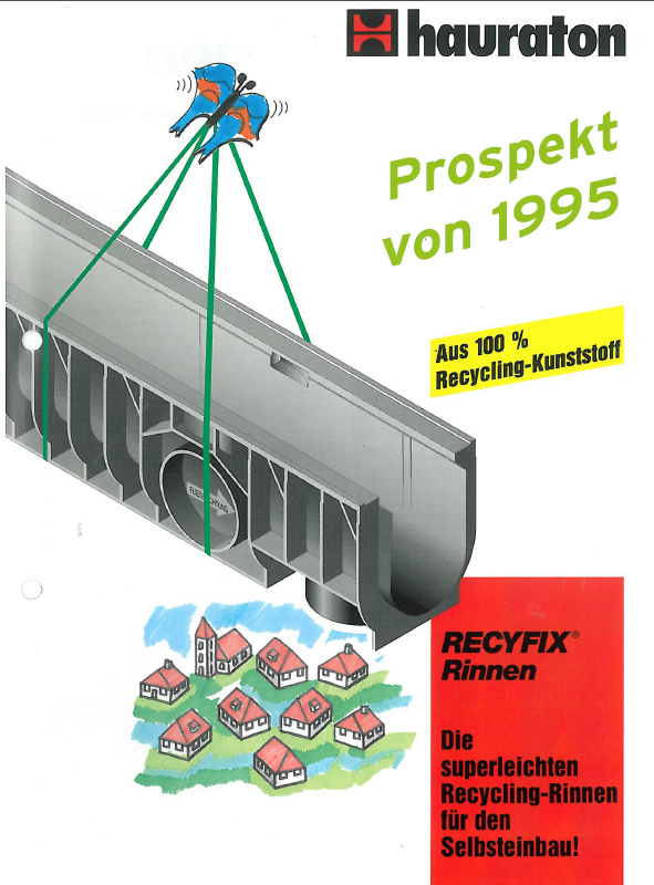 1995: Eine Neuheit von Hauraton macht Furore in der Branche. Neben seinen klassischen Entwässerungssystemen aus Faserbeton entwickelt das badische Unternehmen eine erste bruchsichere und wesentlich leichtere Konstruktion aus recycelbarem Kunststoff – eine Sensation, die seitdem Erfolgsgeschichte schreibt.