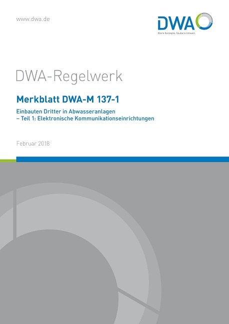 Die Deutsche Vereinigung für Wasserwirtschaft, Abwasser und Abfall e. V. (DWA) hat das Merkblatt DWA-M 137-1 „Einbauten Dritter in Abwasseranlagen – Teil 1: Elektronische Kommunikationseinrichtungen veröffentlicht.