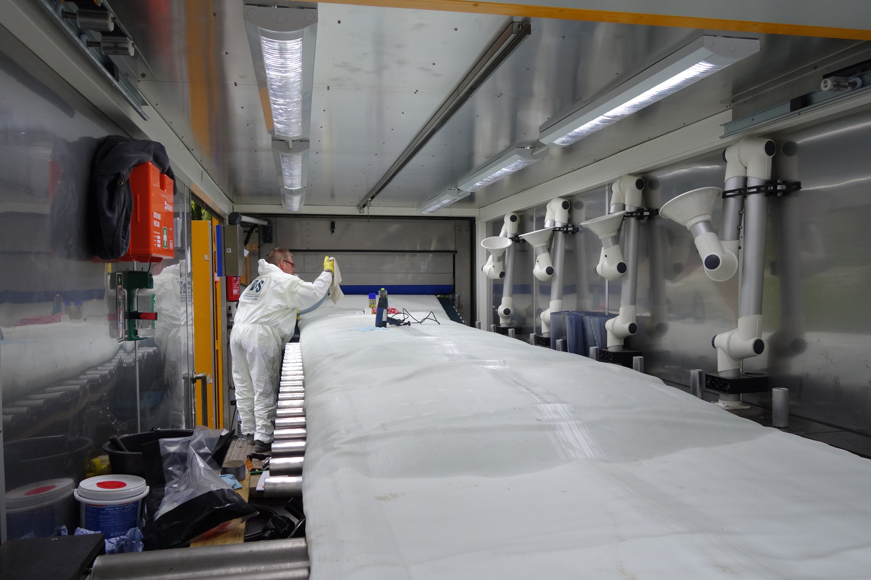 Der speziell für die grabenlose Sanierung von Druckrohrleitungen im Trinkwasserbereich entwickelte BlueLiner meistert aufgrund seiner Bauart problemlos Bögen bis zu einem Winkel von 45°, bei Radien > 3 D sogar bis 90°. Dies war ein Umstand, dank dessen sich das Produkt für die Sanierung eines Dükers in besonderer Weise eignet. Unmittelbar vor dem Einbau wird der flexible Schlauch vor Ort mittels einer vollautomatischen mobilen Tränkanlage unter Vakuum mit einem zugelassenen Zweikomponenten-Epoxidharz imprägniert, kalibriert und in die vorhandene Rohrleitung eingebracht. Das Einbringen des Liners erfolgt entweder mit einer Seilwinde im sogenannten Pull-In-Verfahren – ein Verfahren, das sich besonders bei kleineren Rohrdimensionen empfiehlt – oder im Inversionsverfahren, das in Berlin Anwendung fand.