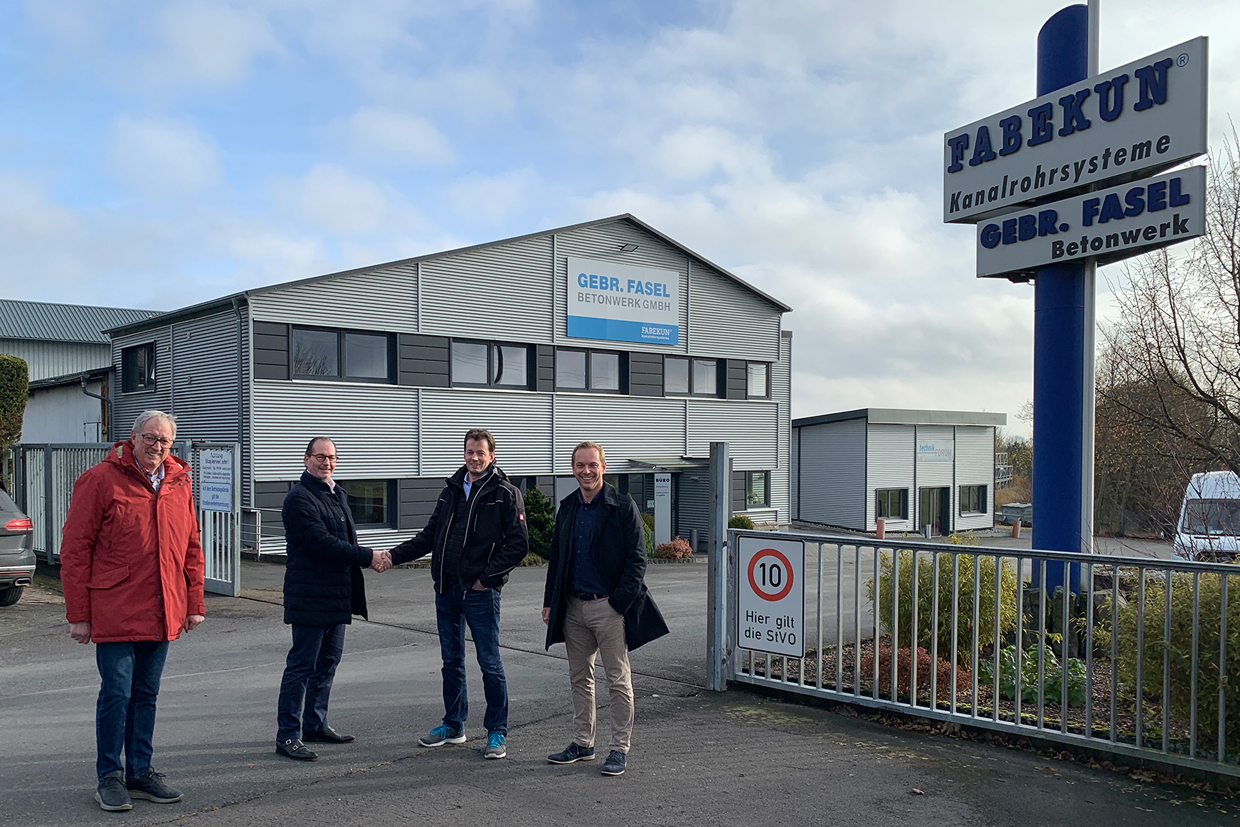 Die Gebr. Fasel Betonwerk GmbH hat einen neuen Besitzer. Ende 2021 hat die P.V. Betonfertigteilwerke GmbH, Hanau, den Geschäftsbetrieb des im Westerwald ansässigen Unternehmens vollständig übernommen. Damit geht eine mehr als 30jährige Familientradition zu Ende, gleichzeitig erhält das FABEKUN®-Kanalrohrsystem marktwirtschaftlich eine neue starke Plattform. Die Produktion von Beton-Kunststoffrohren und -schächten im Betonwerk in Nisterau wird als wichtiger Teil eines wachsenden Familienunternehmens an gleicher Stelle mit den bekannten Ansprechpartnern fortgeführt und ausgebaut.
