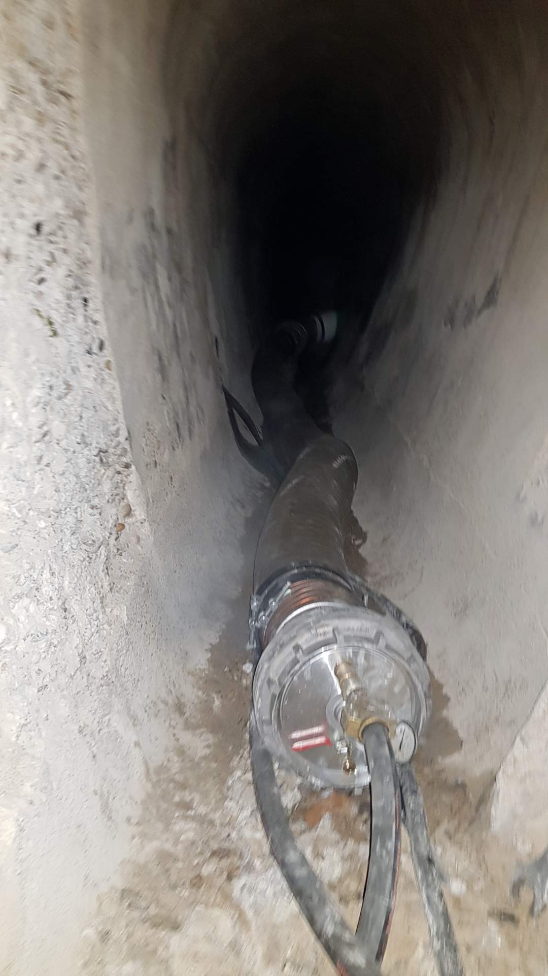 Der BRAWOLINER® wurde mit dem Kunststoffrohr zum unterirdischen Anschluss in den begehbaren Hauptkanal gebracht und unter engsten Platzverhältnissen in den zu sanierenden Kanal per Inversionsverfahren umgestülpt. Anschließend kam der BRAWO® SteamGenerator 50 UL für die Aushärtung zum Einsatz. Das mobile Heizgerät lieferte schnell und zuverlässig die benötigte Dampfmenge, um die Aushärtung des Liners im Rohr zu beschleunigen. Genutzt wurde die Technik der Open-End-Installation, da nur ein einziger Zugang vorhanden war. Für die Installation wurde ein Kalibrierschlauch von BRAWO® SYSTEMS mit einer Bogengängigkeit von bis zu 45° eingesetzt, welcher als Stützschlauch zum Einbringen des Liners in das zu sanierende Rohr diente.