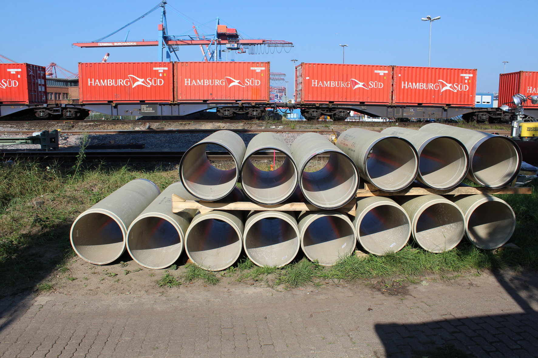 „Ursprünglich war der Einsatz von Vortriebsrohren aus Beton geplant“, so Dlugajczyk weiter. Da die Hamburger Hafenbahn den Eisenbahnverkehrsunternehmen, deren Güterzüge den Hamburger Hafen befahren, die notwendige Infrastruktur zur Verfügung stellt, benötigen alle bei Baumaßnahmen im Gleisbereich verwendeten Produkte die sogenannte EBA-Zulassung. Deshalb fiel die Wahl im Rahmen der Ausführungsplanung durch den Auftragnehmer schließlich auf die GFK-Vortriebsrohre von Amiantit.