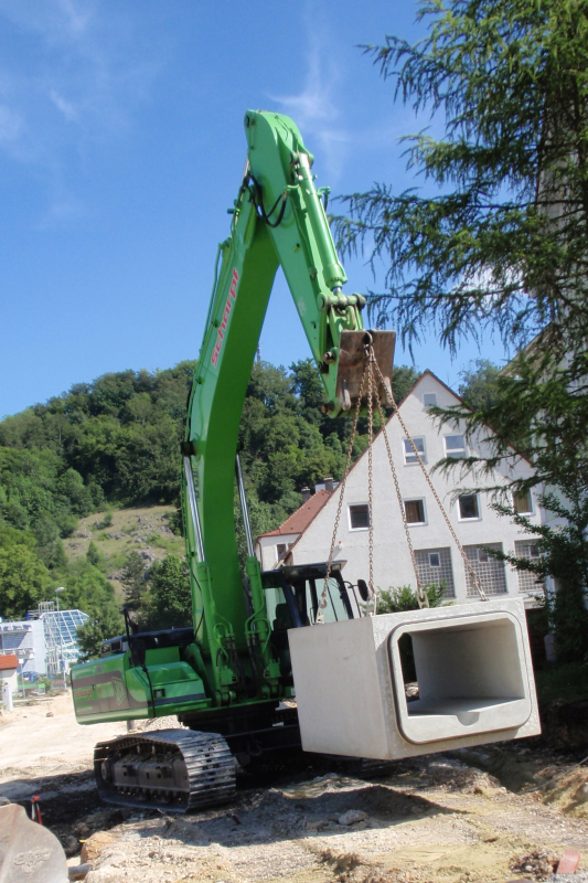 Rund 420 m lang ist der neue Mischwasserkanal in der Kurze Straße und Meeboldstraße, den die Scharpf-Tiefbau GmbH & Co. KG im Auftrag der Stadtverwaltung Heidenheim erstellt hat. Die Baumaßnahme ist Bestandteil von umfangreichen Straßen- und Kanalsanierungsarbeiten in der Heidenheimer Oststadt, in deren Rahmen die Kurze Straße und die Meeboldstraße nicht nur optisch aufgewertet, sondern nachhaltig gegen Überschwemmungen geschützt werden.