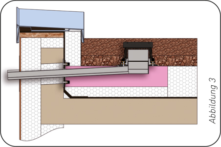 Von hier wird die geringste Wassermenge abgeführt, da hier nur das Regenwasser anfällt, das zwischen den Wärmedämmfugen durchsickert. Die zweite Entwässerungsebene bildet ein wasserableitendes Dachvlies oder eine diffusionsoffene Trennlage auf der Wärmedämmung.