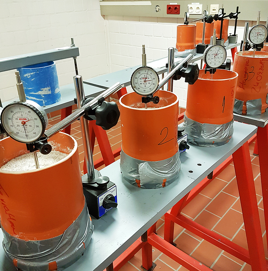 Doch die Anforderungen an das Material sind hoch. Das IKT - Institut für Unterirdische Infrastruktur hat in einem aufwendigen Warentest fünf Flüssigböden auf ihre Eignung für den Kanalbau hin untersucht. Denn: „Flüssigboden sollte keine Wundertüte sein“ – das finden die Mitglieder des kommunalen Lenkungskreises, die alle wichtigen Entscheidungen in diesem Projekt trafen.